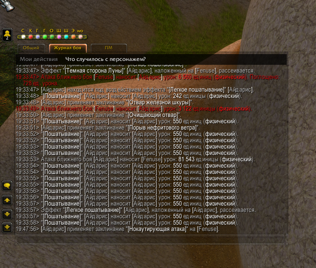 Из второго скриншота видно, что я под действием дебаффа пошатывания находился 10 секунд, а должен был находиться 13 секунд, и количество тиков должно было нанестись в сумме 21шт (1 тик до активации приостановки "эффекта приостановки получения урона от пошатывания" и 20 тиков урона после получения урона и окончания времени действия "эффекта приостановки..."), а дебафф этот урон распределил на 14 тиков (вместо 20). |