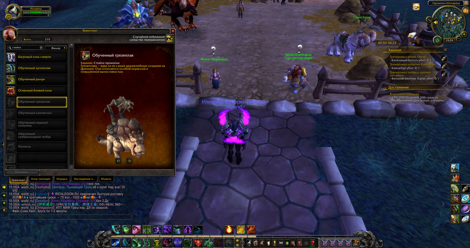 | Description | Вчера днем я выполнял квесты в стойлах гарнизона и мне попался квест, после выполнения которого мне должны были дать маунта Обученный грязеплав. Я этот квест выполнил и добавил маунта в коллекцию. Но затем произошел перезапуск сервера в результате которого маунт был удален из моей коллекции. Сегодня я зашел в игру и думал что квест на его получение тоже откатился. Но и сам квест НПС мне больше не выдает, поскольку цепочка квестов на получение маунта считается завершенной после получения соответствующих поводий, как и в случае с двумя другими маунтами из стойл гарнизона, которые есть в моей коллекции. Прошу вернуть мне Обученного грязеплава в коллекцию | ||||