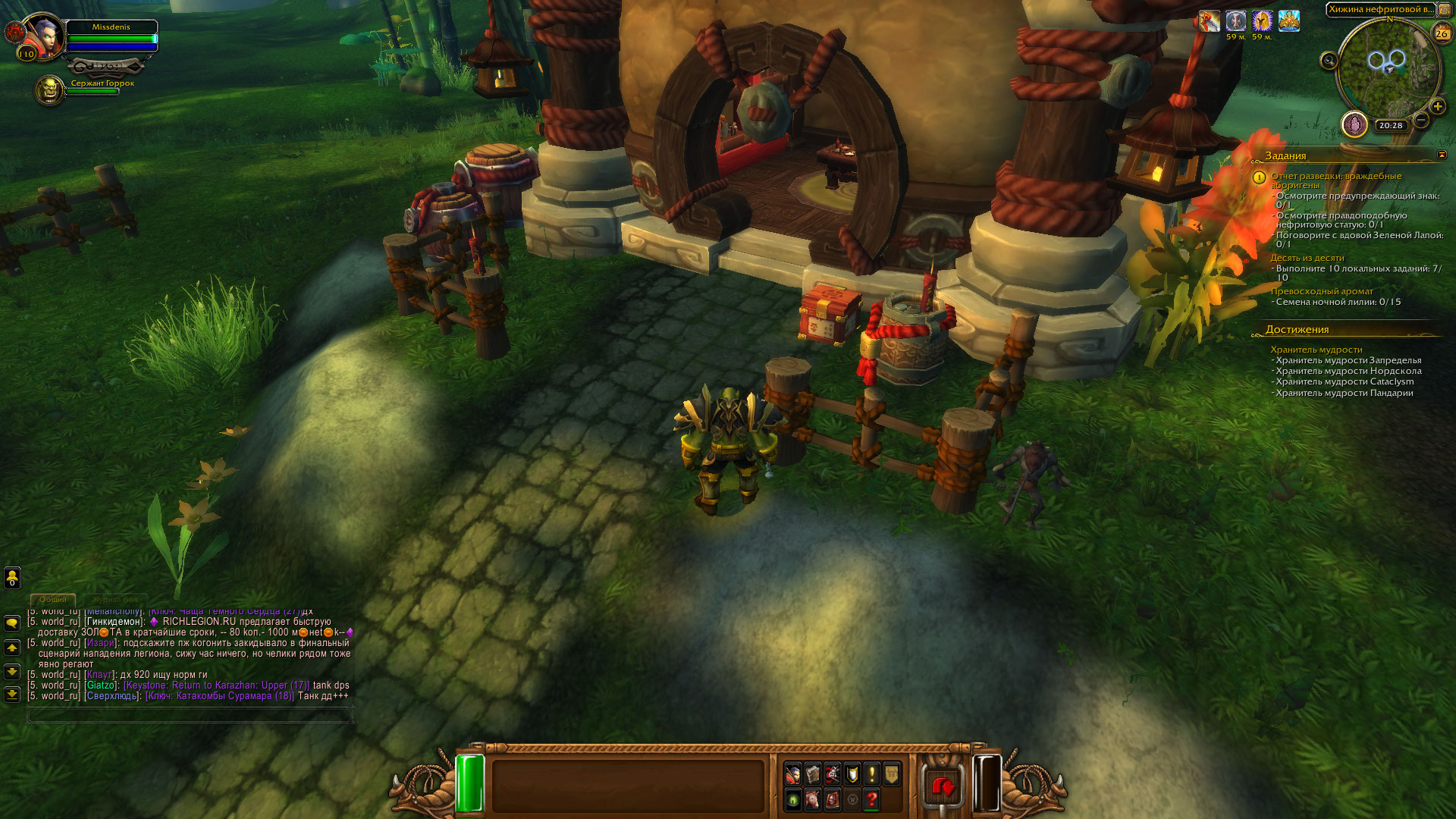 По квесту https://www.wowhead.com/ru/quest=29939/взрывная-наживка сделали... После ребута по новогодним квестам заработало, но дальше еще лучше... https://www.wowhead.com/ru/quest=29730/отчет-разведки-враждебные-аборигены - тут вообще в тихом омуте черти. Таблички нет, статуй тоже, из дома понятное дело никого. Удаляешь квест и летишь к хижине, а там стоят статуи... (знака тоже нет). Получается при выполнении квеста ничего нет, при его отмене частично ничего нет... Опять ждать пока сервак будут перезагружать? На скриншотах видно, где должен быть знак его нет в обоих случаях. Статуи стоят только без квеста. За дом и так понятно. |