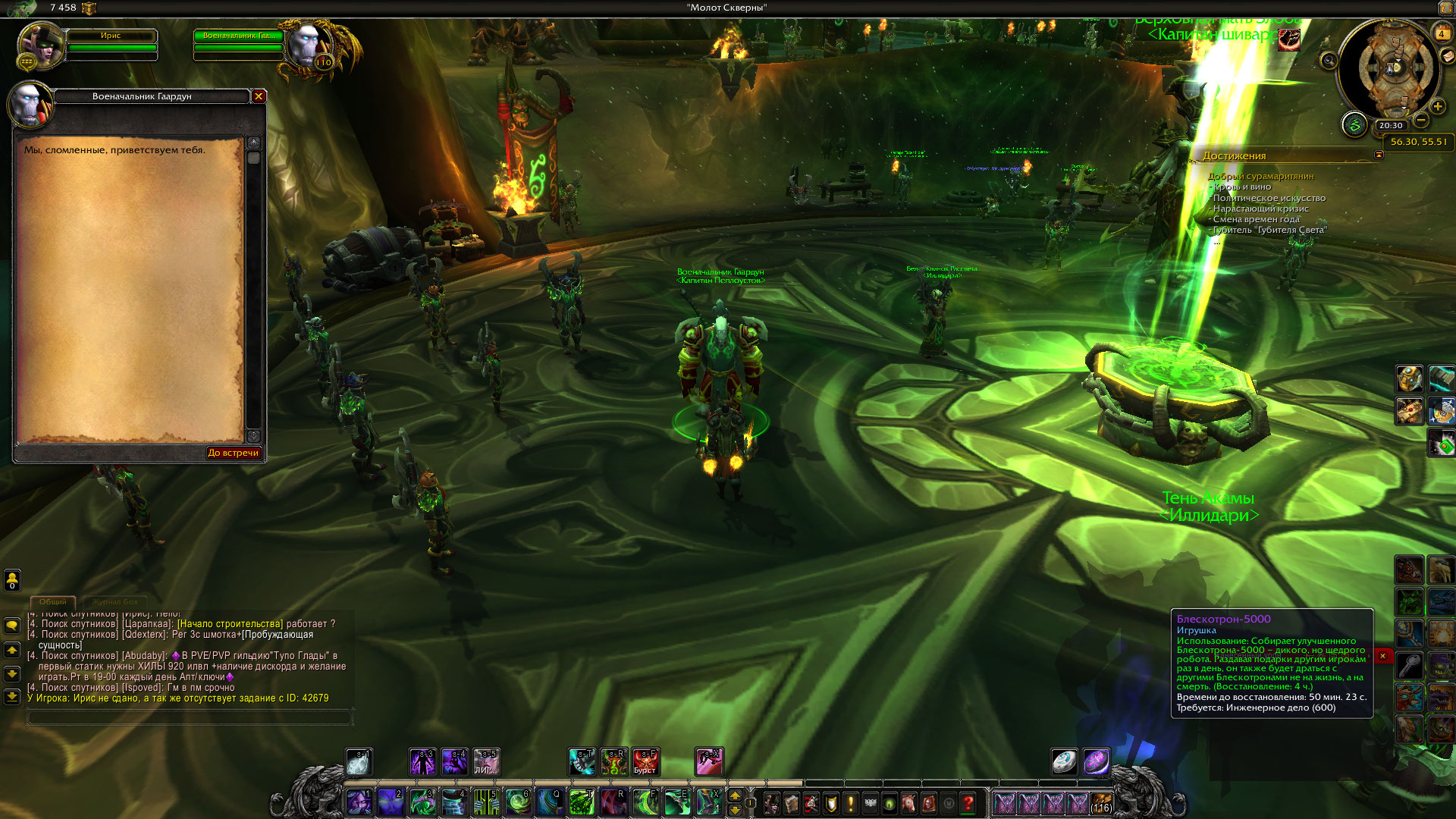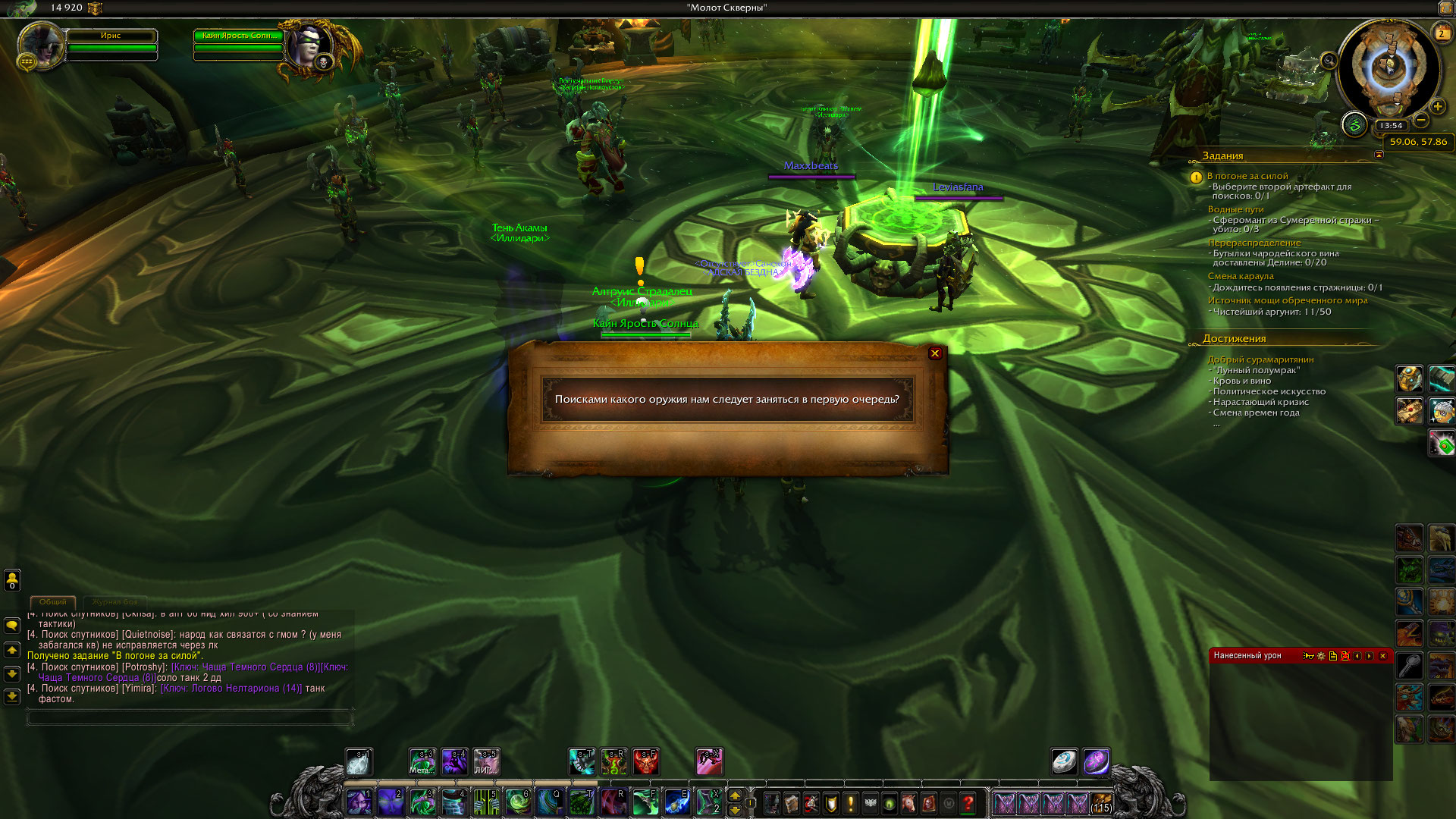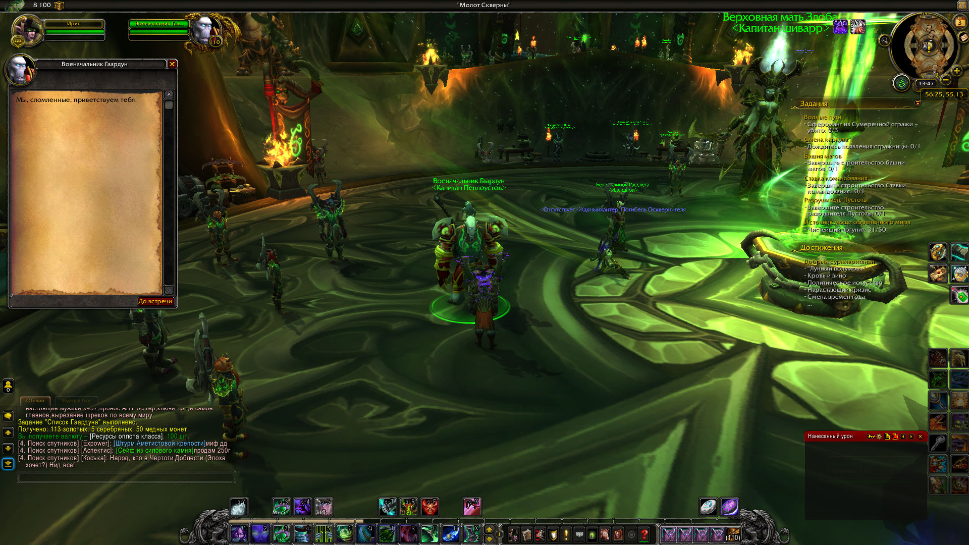 Спасибо, действительно, какие-то правки прошли, квест [Цель номер один] засчитался выполненным, следующим должен идти квест [Явитесь, защитники!]. Он спокойно взялся, и спокойно сдался. Следом идет квест [Список Гаардуна]. Тоже как таковых проблем не вызвал. Прошелся со второго раза, задание на тактической карте было, выполнилось, как бы все ок. Но вот дальше возникла проблема. Судя по этой теме (http://f3.uwow.biz/topic/273348-reshenie-problem-net-nps-s-uluchsheniem-oplota/) следом должен идти квест [Сломленные воины], и должен он браться у того же Гаардуна, но его нет. Вы мне очень помогли конечно, но можно еще чуть-чуть)) Ведь до возможности носить 2 леги осталось буквально 3 квеста) |