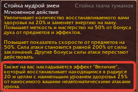 | Description | Монастырские знания (пассив) позволяют Нокаутирующему удару поражать 4 доп. цели нанося 50% урона от основной цели и, соответственно, в Стойке змеи отхил от урона должен учитываться от всех затронутых целей, однако на данный момент учитывается отхил только от одной цели - таргета. Т.е. от соло таргета хилит как положено, но на треше нет | ||||
