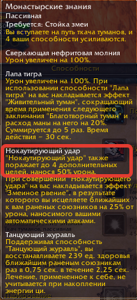 Не совсем понял о каком проке идёт речь. Там нет прока. Стойка змеи - переключаемая, Монастырские знания - постоянная пассивка (34 лвл), Нокаутирующий удар - атакующий скилл, который всегда наносит урон до 5 целей. Там нет никаких проков |