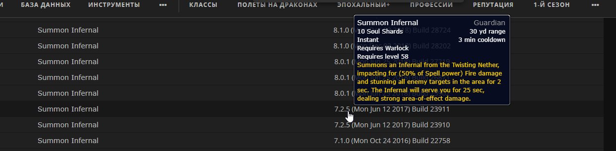Общие данные с этого инста я линканул на 2 скриншоте! https://www.wowhead.com/ru/spell=1122/призыв-инфернала ща 4 раза призыва - 0.9 % оверола - раньше до измениния минимум было всегда хотя бы 20-25 % оверола за фул заход! |