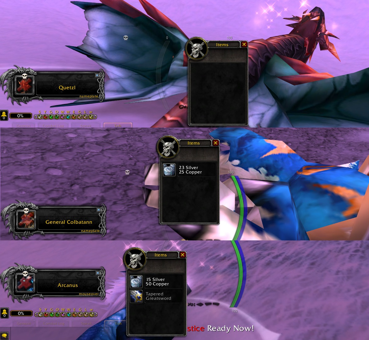 | Description | Редкие мобы Классика: https://www.wowhead.com/npcs/classification:4?filter=13;5;20001#0+1-3+9 Редкие элитные мобы Классика: https://www.wowhead.com/npcs/classification:2?filter=13;5;20001#0+1+3+9 Занижен почти до нуля шанс дропа вещей. Начиная с экспаншена Warlords of Draenor, Редкие и Редкие Элитные мобы должны иметь 100% шанс дропа своих особых вещей: оружия, брони и прочего. Исключение - мобы с которых падают маунты, но таковых на Классике нет. https://us.forums.blizzard.com/en/wow/t/so-how-does-rare-mob-loot-actually-work/899256/3 "Some rare mobs will 100% drop their special item while others only have a chance to drop it." "Most rare mobs have 100% drop chance. Some of them have a small % drop chance (e.g. few Shadowlands 62+ rare) for mounts." | ||||