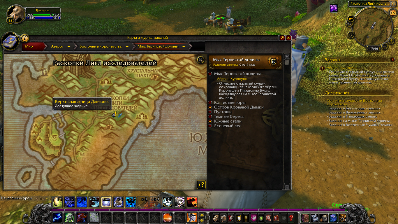 | Additional Information | Найдя на wowhead нужную страницу, пришёл к месту где делается квест и он выдался https://www.wowhead.com/ru/quest=26812/верховная-жрица-джеклик | ||||