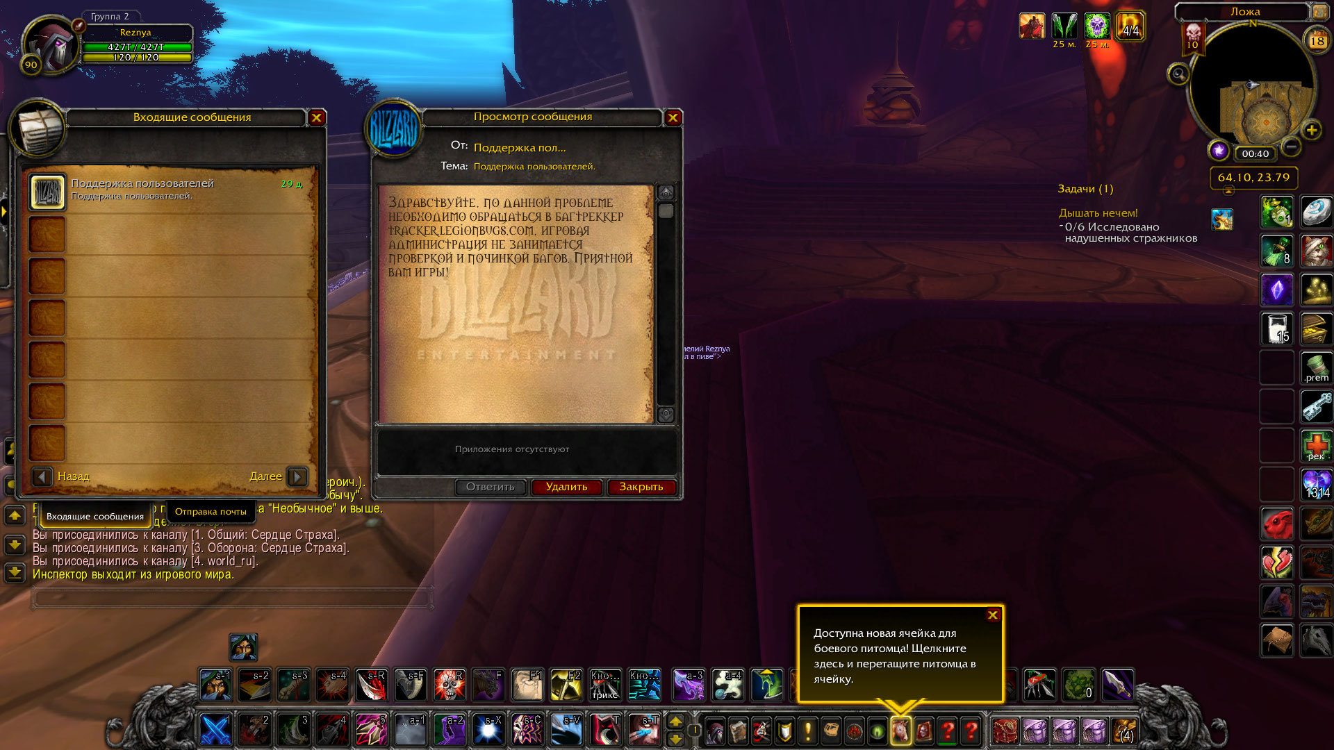 | Description | первые два скрина рла Drop остальные мои Проблема в чем после убийства Гаралона не успели разролить шею на вара потому что вылетел РЛ и пропал таймер лута прошу помочь разобраться в этой проблеме и передать вещь вару из рейда | ||||