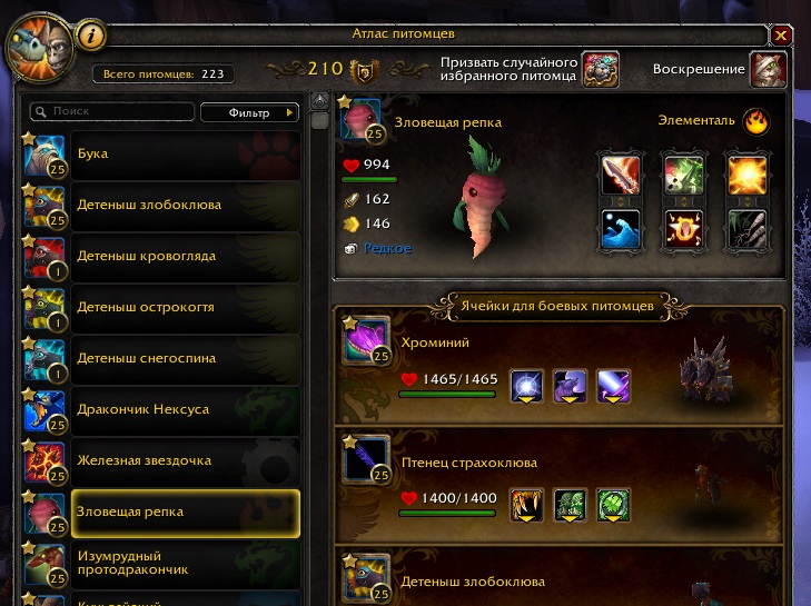 | Summary | 0024810: Боевой питомец 25 ур. https://www.wowhead.com/ru/npc=63365/зловещая-репка | ||||
