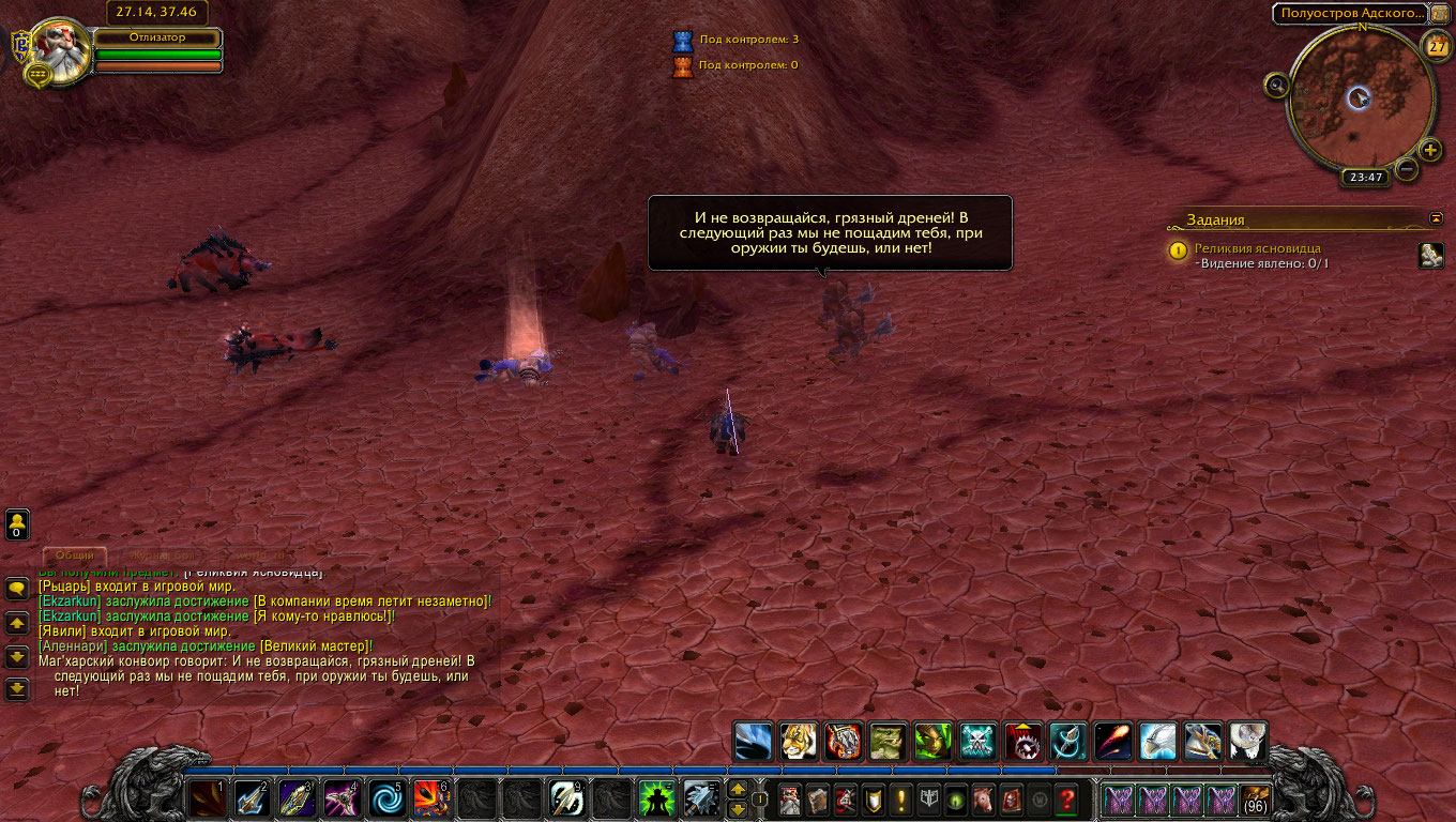 | Description | Задание - "Реликвия ясновидца" в Полуострове Адского Пламени в Запределье, не засчитывается. После принятия задания, и после активации предмета в сумке в нужном месте, скрипт работает, нпс появляются, но после завершения диалога задание не засчитывается. | ||||
