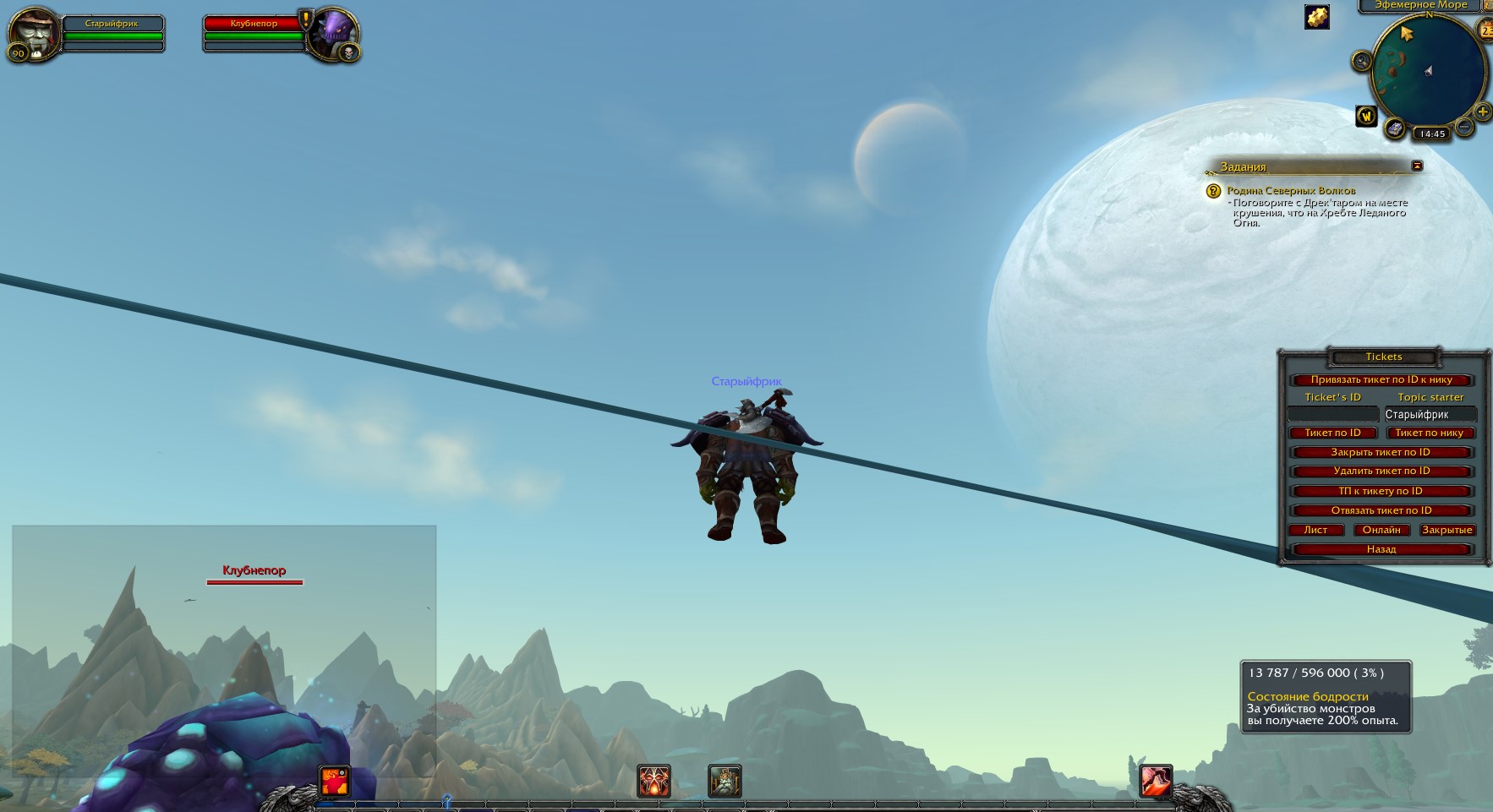 Добрый день! Спасибо что воспользовались системой баг трекинга! Данный баг подтверждаю! Поведение https://www.wowhead.com/ru/npc=87087/%D0%BA%D0%BB%D1%83%D0%B1%D0%BD%D0%B5%D0%BF%D0%BE%D1%80 : 1. При попытке приблизится на расстояние агро он спускается в текстуру гриба. Более от туда его никак не вытащить 2. При попытке дальней атаки либо способности танка "Провокация" на секунду замирает но потом вновь плавно уходит в текстуру гриба. |