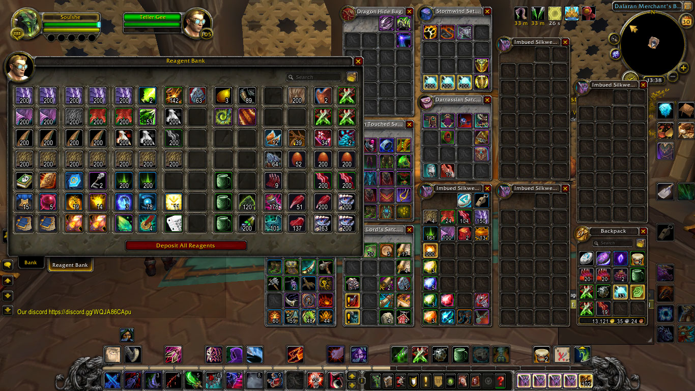 | Description | Hi... i have issue with my reagent bank.... looks like... if i right click on item in my bags that i wanna place into reagent bank i have info that item dosent go in that continer... tested on cooking reagents , LW reagents... next problem looks like.... if i take by left click item in reagent bank and try to move him to other slot in the same bank he goes to new slot but goes gray and i cant move him again....after reloging item is in new place looking normal but i cant take him to slot in reagent bank....he again goes gray....next problem is if i take item to empty slot that i want him to be... he just goes to first empty random slot.... i cant normaly move my all items from slot to slot... what i only can do its take item by left click and pass him to my bags... My nick name in game is SoulShe... any1 can help me fix this problem ?? | ||||