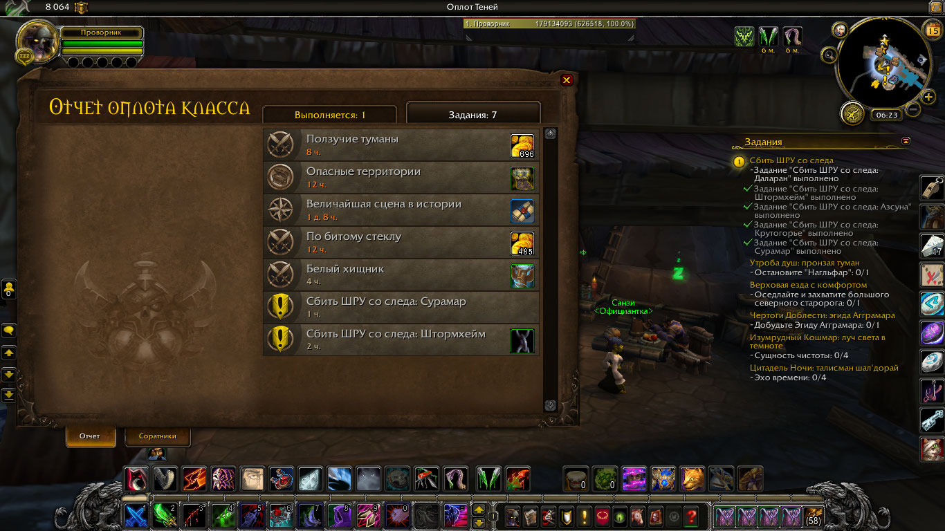 | Description | Квест "Сбить ШРУ со следа" — часть цепочки классового оплота разбойника. Нужно отправить соратников на 5 миссий в разные города. Миссия в один из городов — Даларан, не появляется на стратегической карте , тогда как миссии в другие города повторились уже несколько раз. Не помогала ни отмена квестов и чистка кеша, ни отправление соратников на другие миссии. | ||||