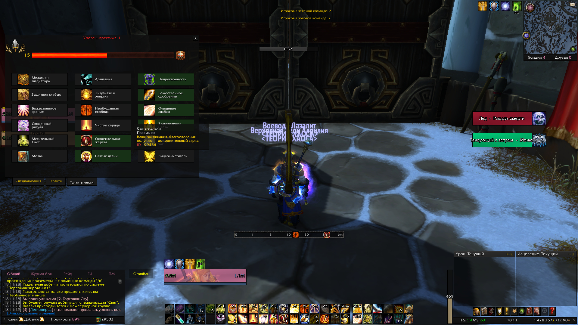 Видно как паладин заходит на арену и у него всегда 2 сакры и тд