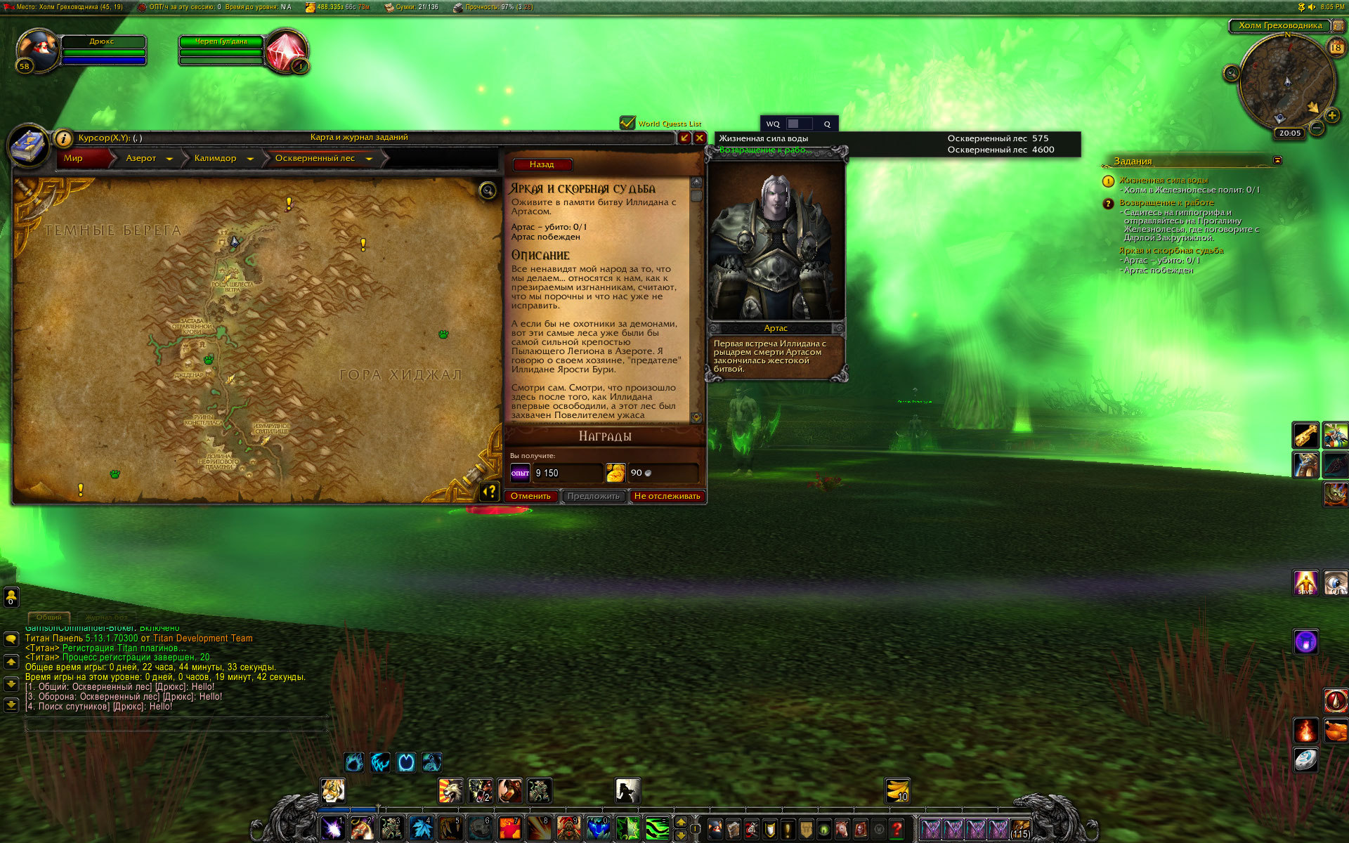 В общем, не знаю, что это было. Задания в Оскверненном лесу выполнял строго последовательно, начиная с первого - с доски приказов. Когда добрался до начала цепочки, было последовательно получено первые шесть критериев ачивки из девяти. Собственно эта цепочка должна была стать седьмым критерием. Пробовал отменять квест и брать снова, ничего не помогало. Создал задачу. Единственное отличие - 58 уровень друида вчера, против 68 и выученных полетов сейчас. После прочтения результатов расследования зашел на своего 110го, взял начало цепочки, даже видео записал - все нормально. Перезашел на друида - тоже уже все нормально, цепочку выполнил, локация закрыта. Спишем на случайный глюк. Спасибо за помощь. |