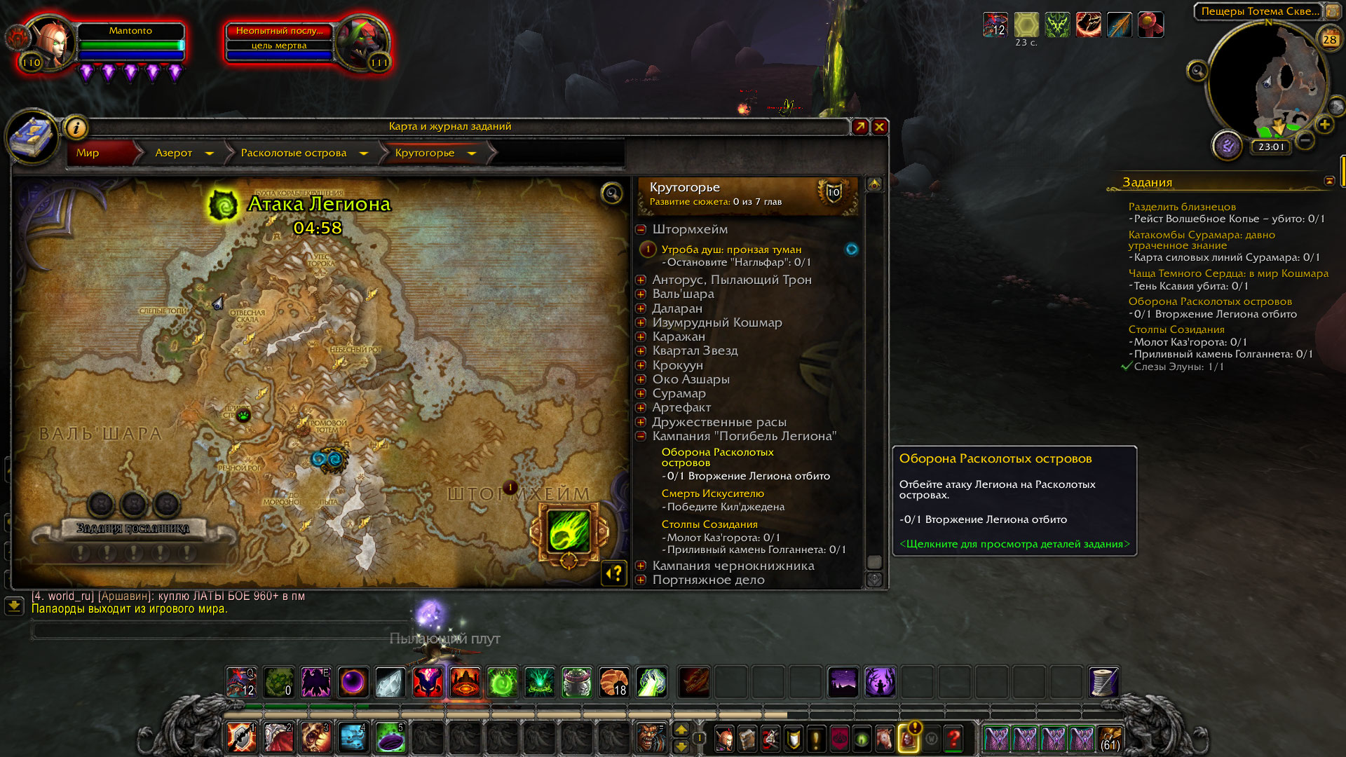| Additional Information | На скриншоте невыполненный квест и все локальные задания, связанные с нападением Легиона, пройдены | ||||