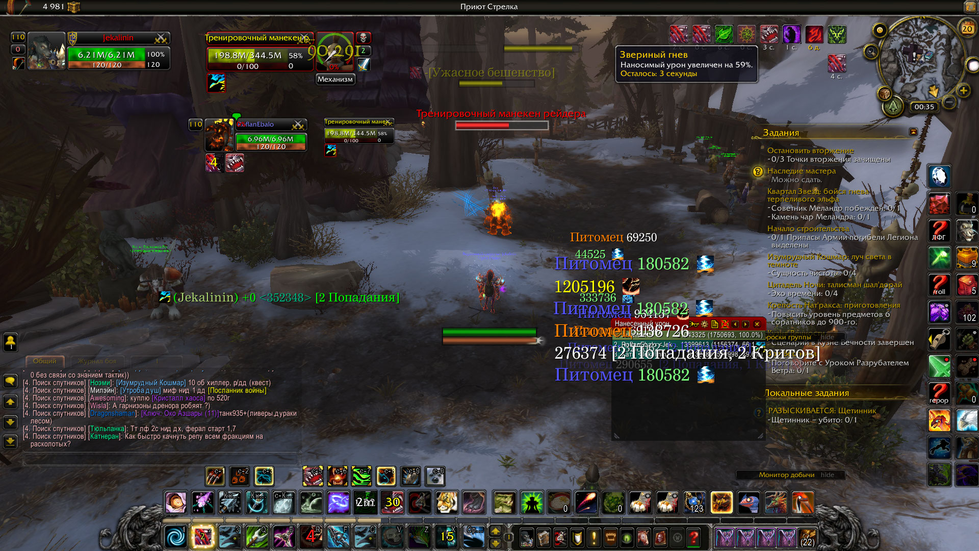 Добрый день! Действительно, драйвер 246126 (драйвер от БМ т20 2куска) должен стакать увеличение урона ауры 207033 (накладывается на пэта при использовании https://ru.wowhead.com/spell=19574 ) и 19574 (накладывается на игрока). https://www.warcraftlogs.com/reports/vPx23cdfyK16TwDL#fight=36&type=damage-done&source=11&by=source&view=events&ability=1 У нас же баф на игроке стакается, а на питомце - нет. |