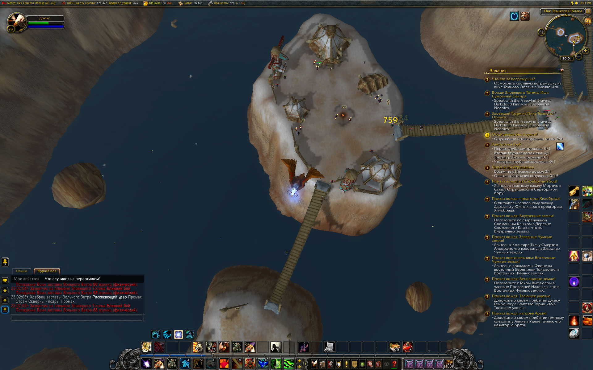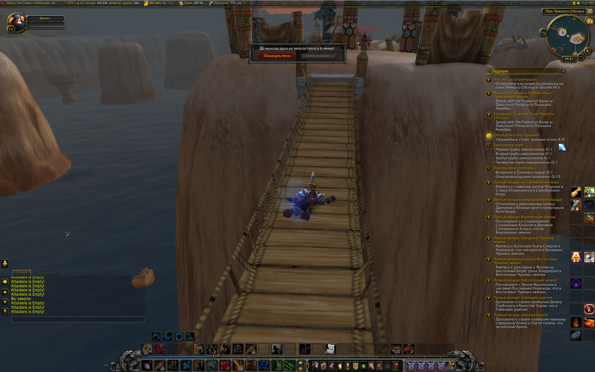 | Steps To Reproduce | Пригнать персонажа 70-90 уровня в локацию, тем или иным способом начать выполнение цепочки квестов, чтобы появился https://ru.wowhead.com/npc=45278/%D1%85%D1%80%D0%B0%D0%B1%D1%80%D0%B5%D1%86-%D0%B7%D0%B0%D1%81%D1%82%D0%B0%D0%B2%D1%8B-%D0%B2%D0%BE%D0%BB%D1%8C%D0%BD%D0%BE%D0%B3%D0%BE-%D0%B2%D0%B5%D1%82%D1%80%D0%B0 , после чего попытаться зачистить мобов в локации - на вершинах. | ||||