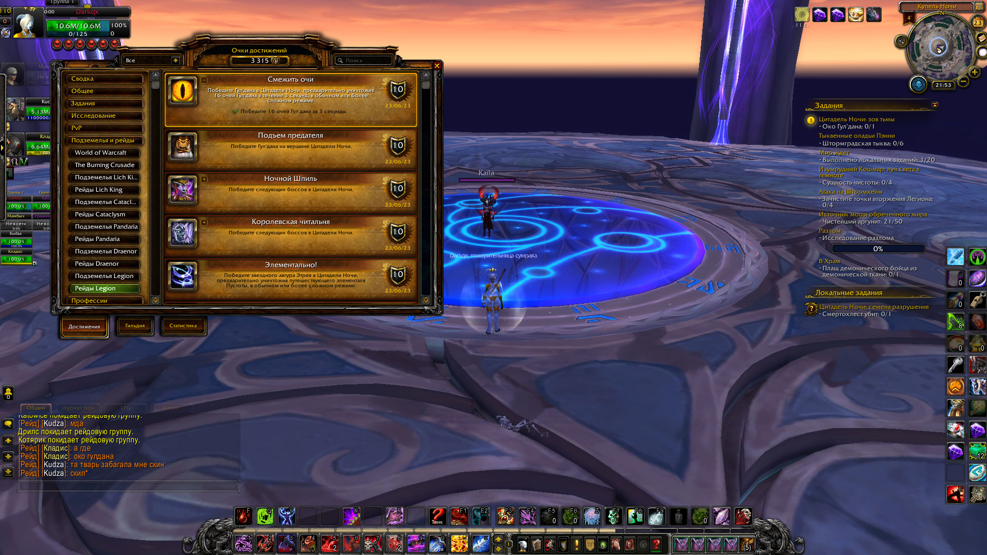 | Description | Мы траили рейдом Цитадель Ночи. Я выполнил 2 квеста по цепочке к достижению "Баланс сил" и взял предпоследнее: Цитадель Ночи: зов тьмы. Когда мы убили Гул`дана, с его сундука выпало только голда и ничего более, самого Ока я не увидел. (На скриншотах видно, как мы стоим в Купели Ночи, последней локации, где должен быть Гул`дан и видна ачивка, т.е мы его убили, сундук залутали, а получить ничего не получили..) | ||||