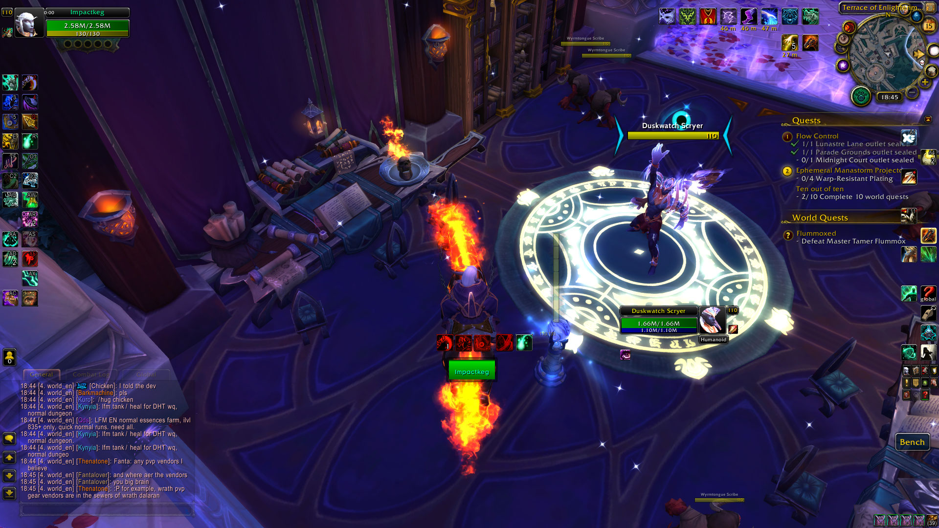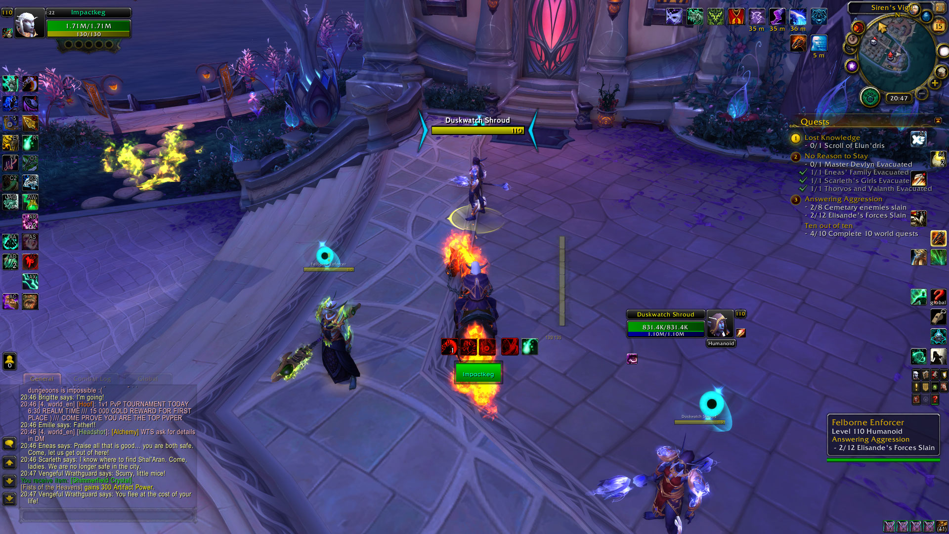 | Description | The npc's from the screenshot bellow should try to dispel player's illusion buff. They do not. Vineyard Warden : https://www.wowhead.com/npc=108871/vineyard-warden Arcane Chronomaton: https://www.wowhead.com/npc=111622/arcane-chronomaton Duskwatch Scryer: https://www.wowhead.com/npc=116360/duskwatch-scryer Duskwatch Warpcaster: https://www.wowhead.com/npc=111523/duskwatch-warpcaster Chronearch Defender: https://www.wowhead.com/npc=109670/chronarch-defender Imperial Arcbinder: https://www.wowhead.com/npc=108188/imperial-arcbinder Felborne Collaborator: https://www.wowhead.com/npc=115692/felborne-collaborator Duskwatch Spellshield: https://www.wowhead.com/npc=111485/duskwatch-spellshield | ||||
