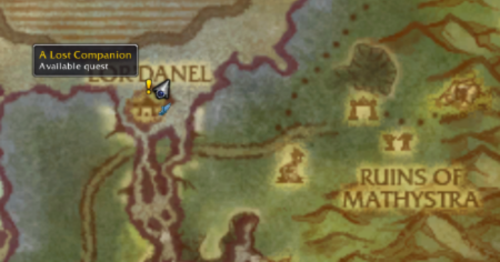 | Description | At Lor'Danel Coordinate : 51.0, 18.0 on the map, it show a « ! » A lost Companion whos important to finish all quest in Darkshore, but theres any PNJ giving it. | ||||
