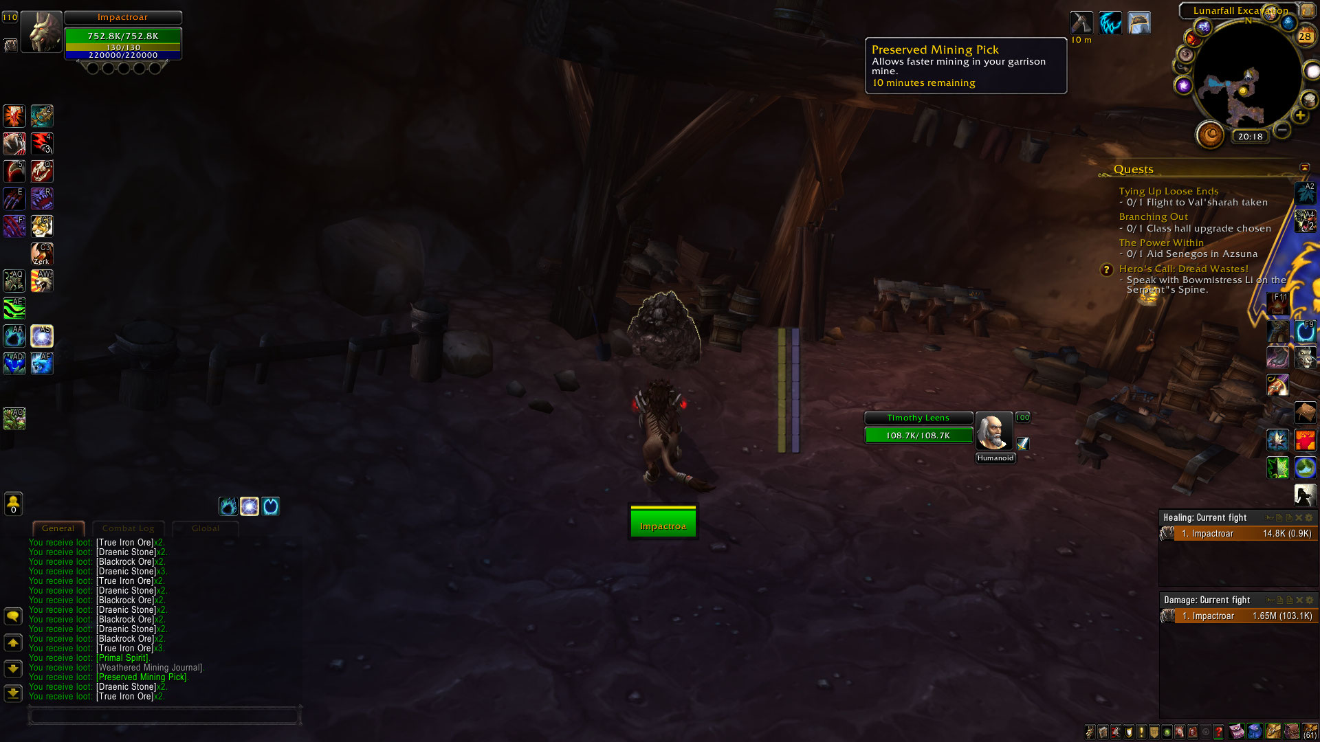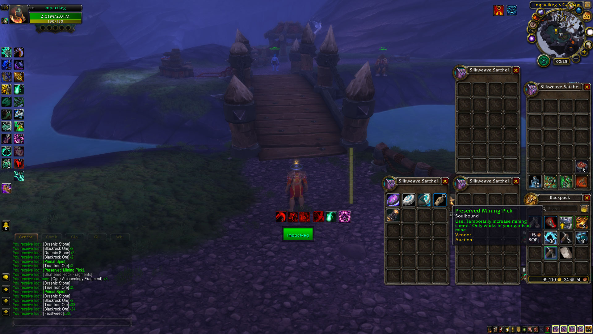 | Description | https://www.wowhead.com/item=118903/preserved-mining-pick#comments When used in side the garrison mine, this buff should decrease mining time inside the garrison mine. It does not. | ||||