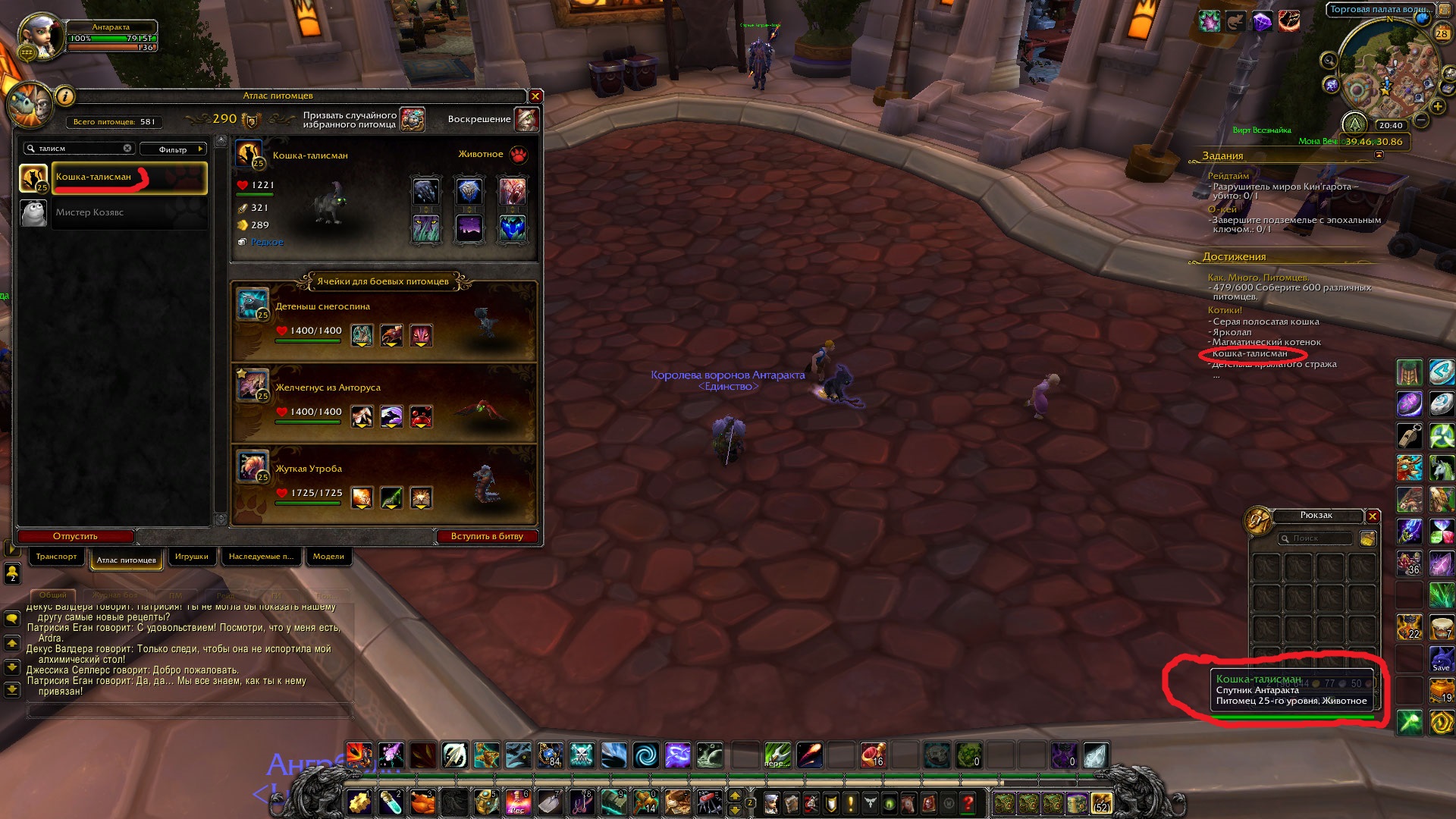 В общем неважно) если его реально не засчитало, то подойдите к Оши в даларане и кликните меню "информация". Там будет инфа как исправить пета в критерии. После обновы будет корректно отображать инфу из меню. |