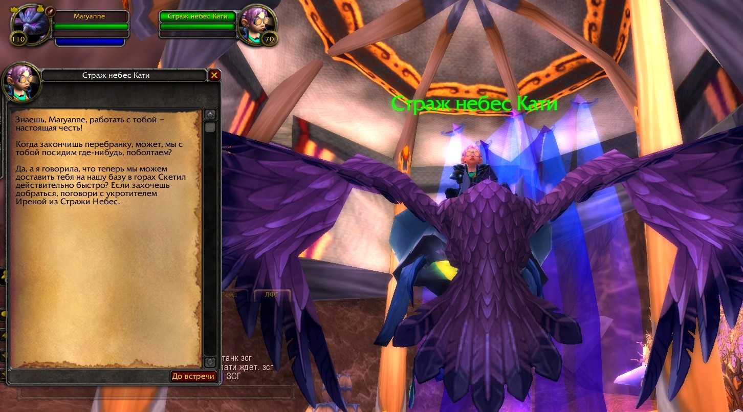 | Description | 1. Maryanne, uWoW Legion x5 2. Квест «Ловим летучих скатов!» (ID: 11065) 3. NPC «Страж небес Кати» (ID: 23335) не даёт данный квест. Соответственно, нет возможности взять следующему, завершающему главу «Огры Огри'ла» [необходима для получения достижения «Хранитель мудрости Запределья»]. Информацию о том, что необходимо прокачать репутацию не нашла, но на всякий случай внесу ясность, что репутация со «Стражи Небес Ша'тар» на момент написания данного бага «Уважение». P.S. Это единственная глава, которая не завершена. | ||||