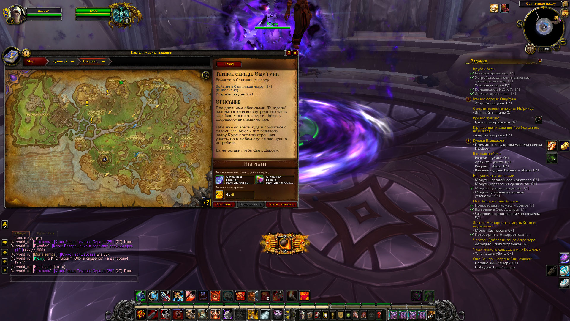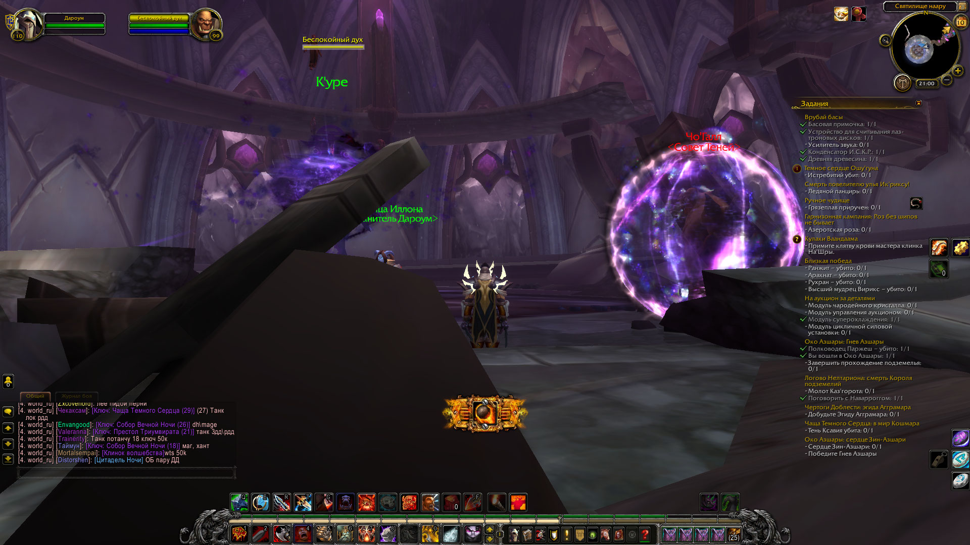 | Description | https://www.wowhead.com/ru/quest=35396/ нет мини ивента https://youtu.be/4Ci6sBVac_o?t=22 Квест состоит из двух пунктов: войти в святилище Наару 1/1(Выпонено) Истрибитий убит 0/1 После выполнения первого пункта наблюдается заскриптованная катсцена в которой Чо'Галл превращает К'уре в Сфера Бездны, после чего следующая превращается в Истрибития, при этом Чо'Галл должен исчезать, однако Чо'Галл зависает, а в К'уре появляется Сфера Бездны и на этом все, данный квест необходим для выполнения ряда достижений и прохождения сюжетной линии. | ||||