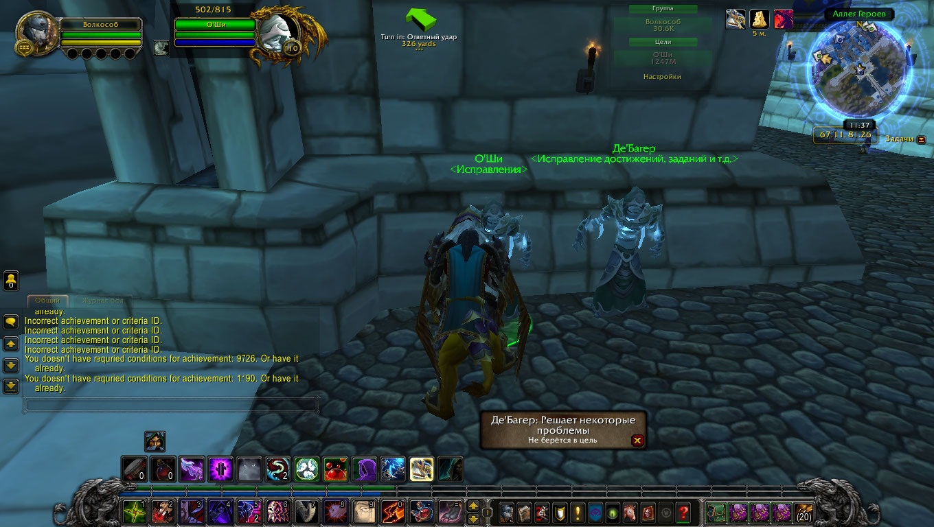 В штормграде появился дебаггер и Оши. при обращении к дебаггеру после нажатия "достижения" ничего не происходит. Оши просит ввести id достижения. Какие мои действия? |