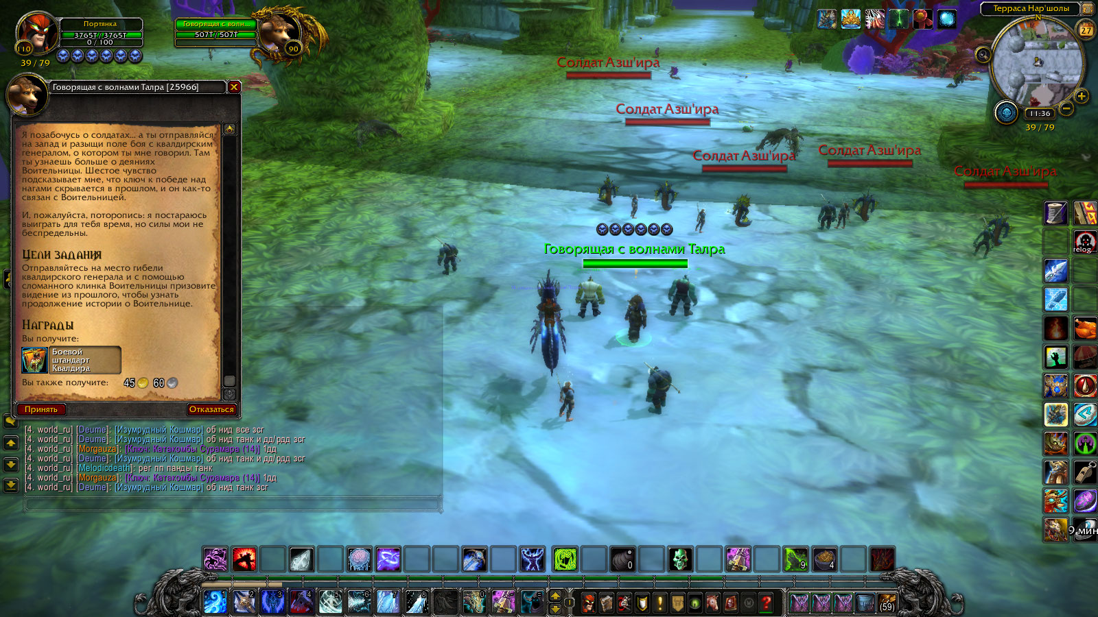 Ничего нового не посоветовали - Я и папку КЕШ чистил и персонажа ремонтировал в ЛК и квест отменял и брал заново ((единственное чего не смог отобрать у шамана БУБЕН чтоб НПС прилетело туда.Как описывал-так и не реагирует НПСи начать с ней ДИАЛОГ неполучаеться. |
