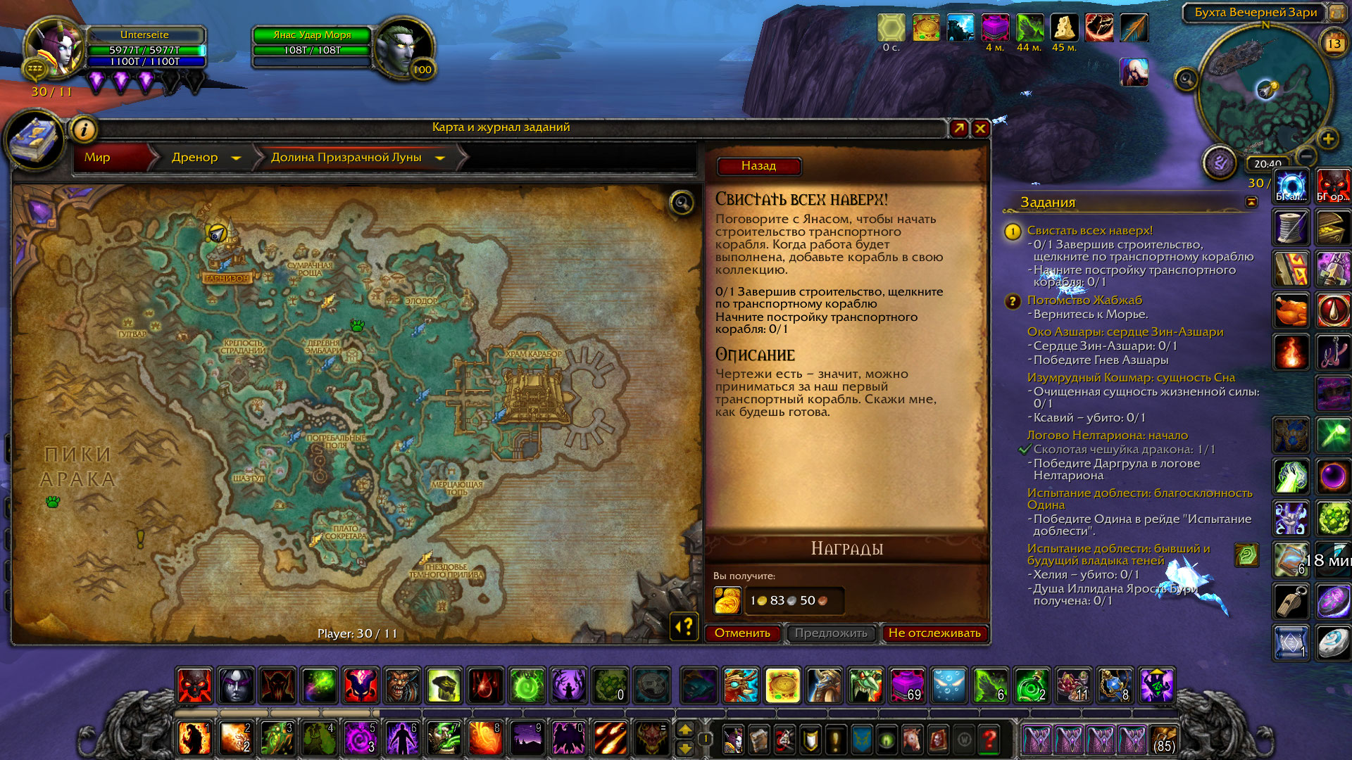 | Description | Legion - 100 Дренор, гарнизон. Нет пристани. НПС на пристани есть самой пристани нет. Квест ID 39055 (https://www.wowhead.com/ru/quest=39055/свистать-всех-наверх) не работает. Выполнить его не могу так как самого транспортного корабля не видно (хотя на миникарте он отображается). Соответственно пройти дальше не могу . Сброс кэш и переустановка клиента не помогает. | ||||