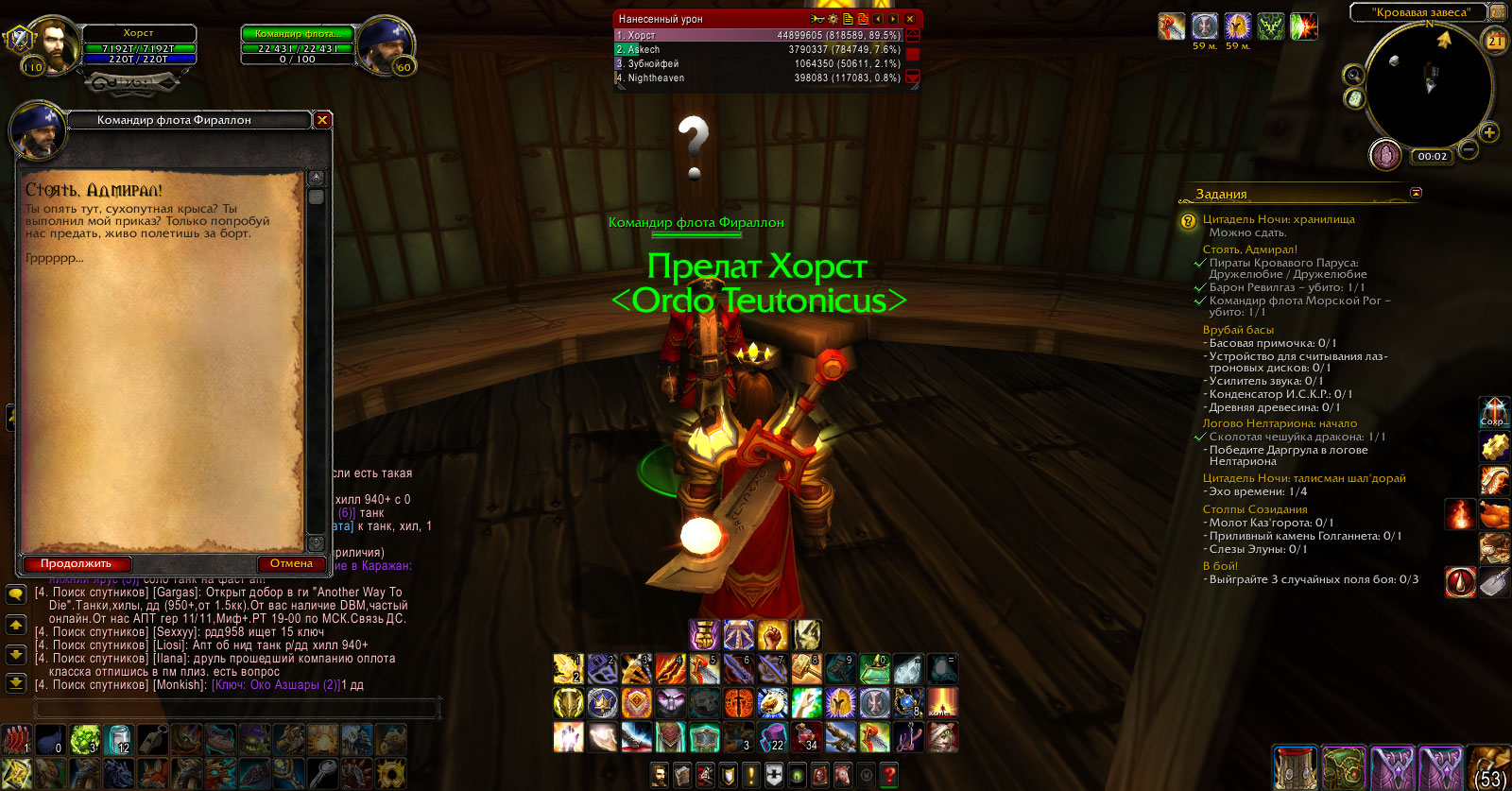| Description | Для сдачи квеста https://ru.wowhead.com/quest=4621/%D1%81%D1%82%D0%BE%D1%8F%D1%82%D1%8C-%D0%B0%D0%B4%D0%BC%D0%B8%D1%80%D0%B0%D0%BB были выполнены все условия, как то: соответствующий уровень репутации, убийство Барона Ревилгаза и Командира флота Морского Рога. Условия выполнения засчитаны, но не получается сдать квест у НПЦ https://ru.wowhead.com/npc=2546/%D0%BA%D0%BE%D0%BC%D0%B0%D0%BD%D0%B4%D0%B8%D1%80-%D1%84%D0%BB%D0%BE%D1%82%D0%B0-%D1%84%D0%B8%D1%80%D0%B0%D0%BB%D0%BB%D0%BE%D0%BD Скриншоты прилагаю. | ||||