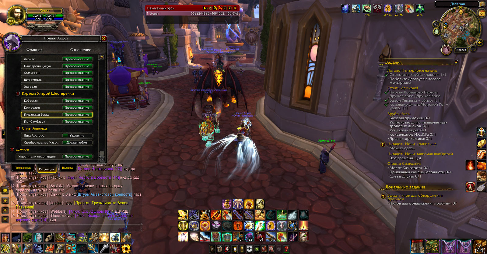 На вовхеде ясно написано, что у квеста есть минимальные требования по репутациям: Пираты Кровавого Паруса (Дружелюбие) Пиратская Бухта (Ненависть) на скринах я не вижу выполненных условий. |