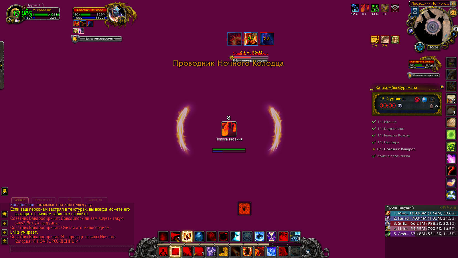 Такой розовый экран до момента, пока не сбить каст боссу. |