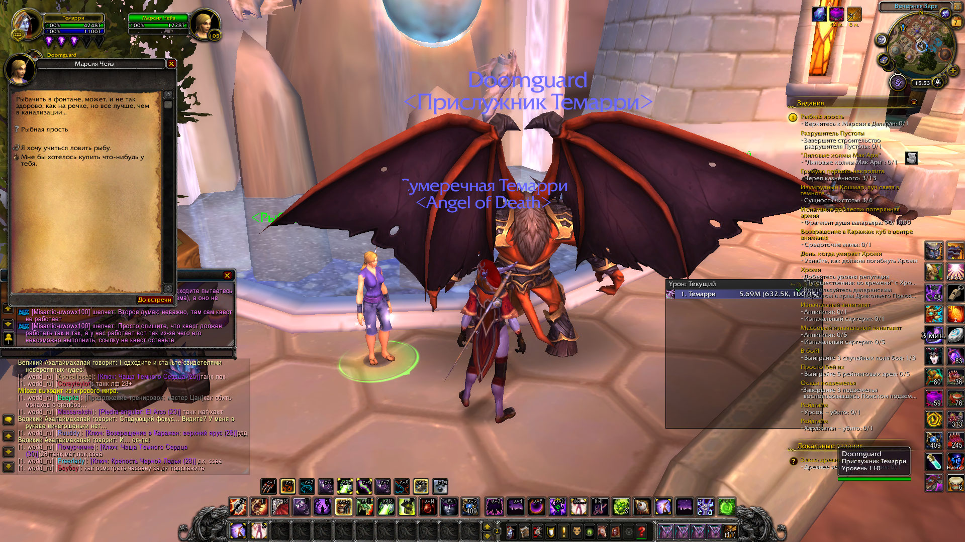 | Steps To Reproduce | После телепорта в Даларан и прохождения сценария моб "Марсия Чейз" никак не реагирует на возвращение персонажа, не работает прожимка, релог и т. д.. | ||||