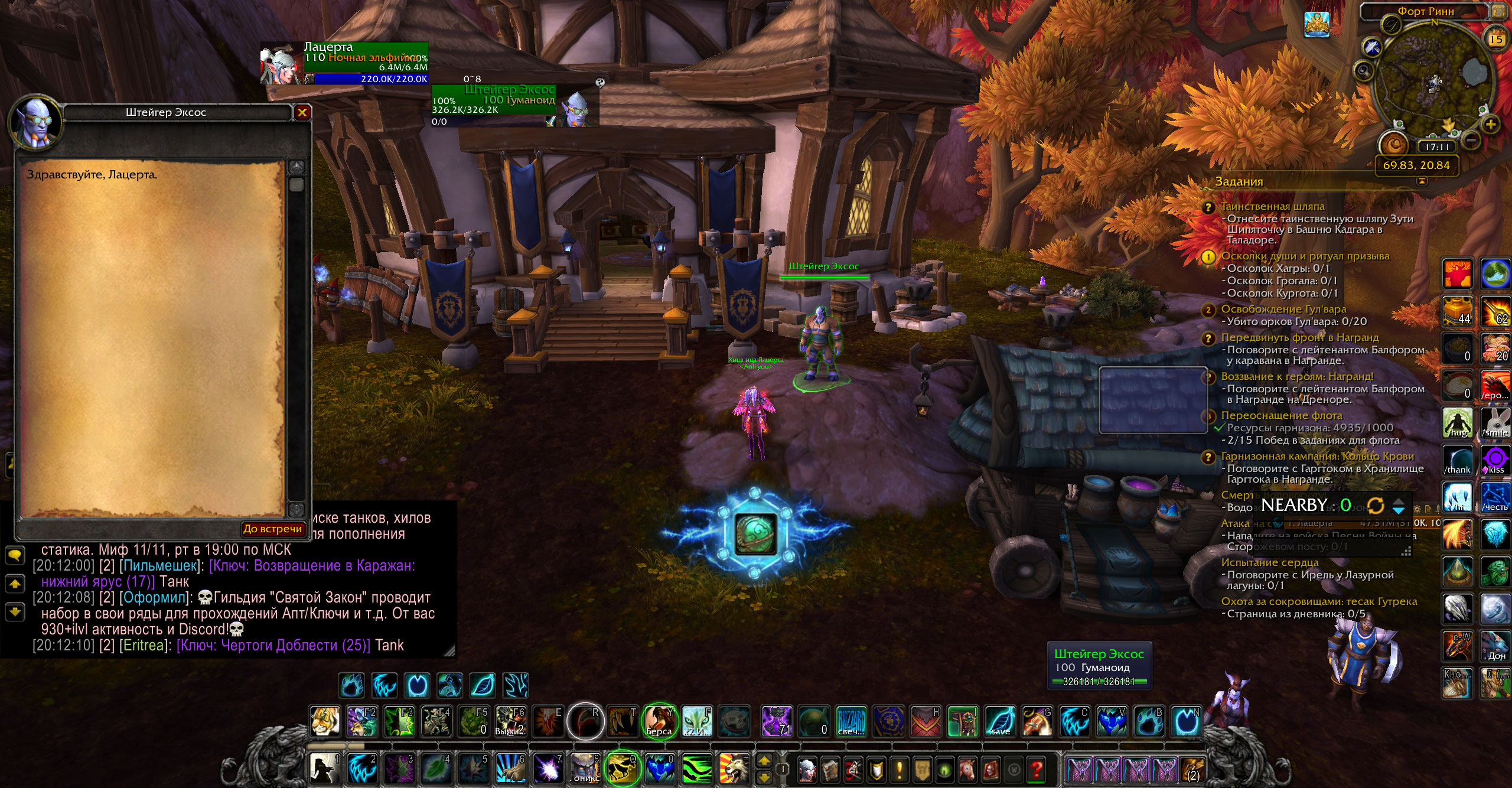 | Description | Нужны полёты на Дреноре. В ачивке https://www.wowhead.com/ru/achievement=8920/%D1%81%D0%BA%D0%B0%D1%82%D0%B5%D1%80%D1%82%D1%8C%D1%8E-%D1%82%D0%B0%D0%BB%D0%B0%D0%B4%D0%BE%D1%80%D0%BE%D0%B3%D0%B0#comments не сделаны 2 квестовых линии, "Создание форпоста" и "Битва за Шаттрат", т.к. у меня нет больше квестов в Таладоре, вообще. Последнее, что я сделала, это построила Башню Магов в Форте Ринна. Никакие квесты не появились. Также, судя по Вовхеду, у НПС Штейгера Эксоса, можно перевыбрать и построить арсенал (для другой квестовой линии), - этого тоже сделать нельзя. Что делать? Почему нет развития цепочки далее? | ||||