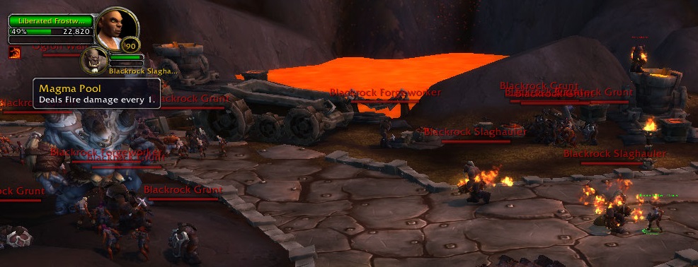 | Description | Mobs in the Blackrock Quarry area of the Draenor intro quest chain have the aura "Magma Pool" from the Firelands raid https://www.wowhead.com/search?q=Magma+Pool#npc-abilities It stacks and quickly kills players that can't heal and/or mitigate the effects immediately. | ||||