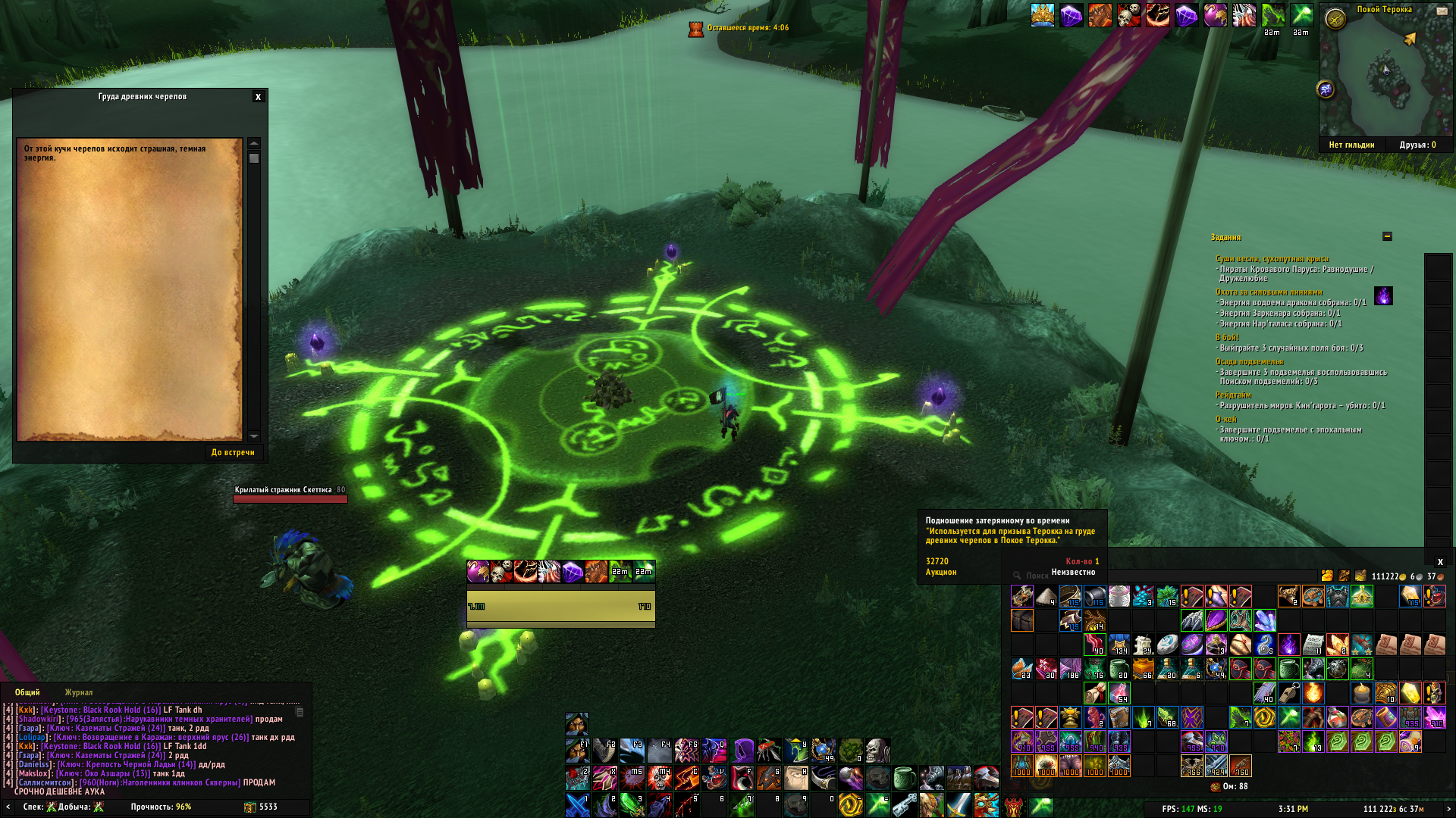 | Description | Нет возможности призвать рарника, предмет https://www.wowhead.com/ru/item=32720/%D0%BF%D0%BE%D0%B4%D0%BD%D0%BE%D1%88%D0%B5%D0%BD%D0%B8%D0%B5-%D0%B7%D0%B0%D1%82%D0%B5%D1%80%D1%8F%D0%BD%D0%BD%D0%BE%D0%BC%D1%83-%D0%B2%D0%BE-%D0%B2%D1%80%D0%B5%D0%BC%D0%B5%D0%BD%D0%B8 присутствует в интвентаре, но в окне нет возможности призвать Терокка | ||||