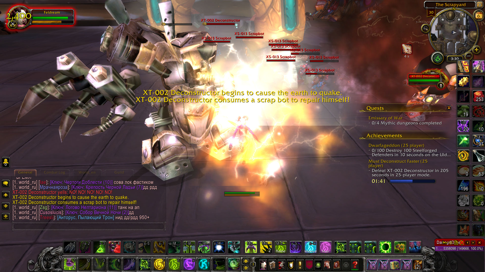 Exploding https://www.wowhead.com/npc=33346/xe-321-boombot does around 50% HP to https://www.wowhead.com/npc=33343/xs-013-scrapbot |
