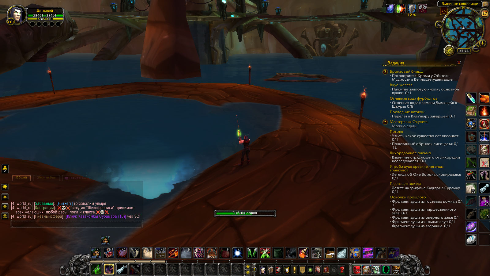 | Steps To Reproduce | Для получения возможности выловить босса и начать с ним сражение: 1) 6-ть круглых платформ, вокруг лунки, должны быть зачищены от мобов. 2) Мост до финального босса https://www.wowhead.com/ru/npc=21212/%D0%BB%D0%B5%D0%B4%D0%B8-%D0%B2%D0%B0%D0%B9%D1%88 должен быть поднят. 3) Начать ловить рыбу в https://www.wowhead.com/ru/object=184845/strange-pool 4) С определённым шансом появляется босс для сражения после удачной ловли | ||||