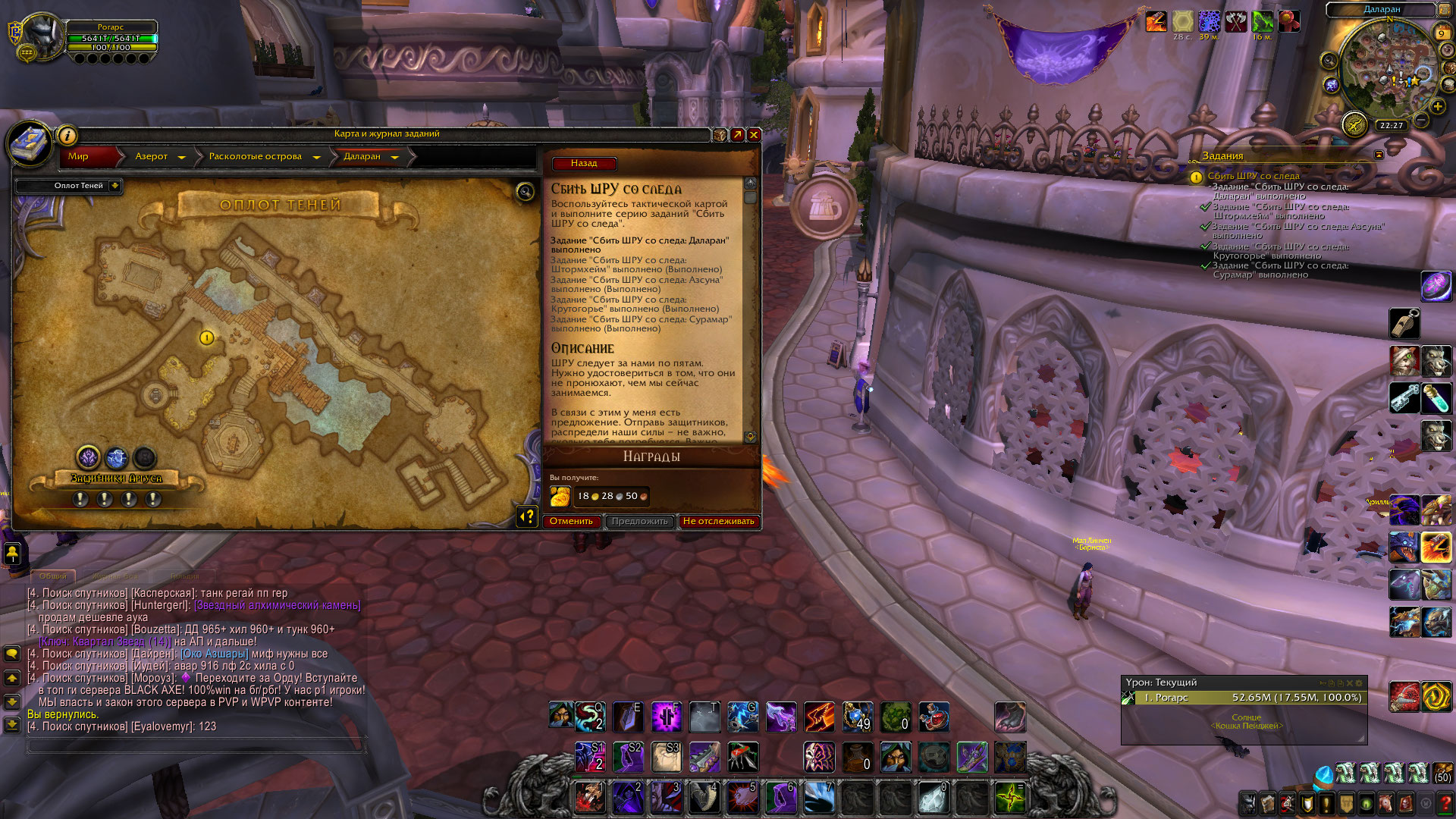 | Description | Оплот Класса Разбойников. Кампания разбойников. Играю за разбойника, ник Рогарс, примерно с апреля месяца. Квест [Сбить ШРУ со следа]. Данный квест выполняется на тактической карте. Нельзя выполнить критерий квеста -Сбить ШРУ со следа:Даларан, так как он вообще на тактической карте не появляется. Сначала пробовал просто отменять квест потом пробовал отменять квест, чистить папки Cache, исправлять персонажа в личном кабинете. Результат во всех случаях - Отрицательный. Не один раз обращался к ГМ и писал тикет о проблеме КВ. | ||||