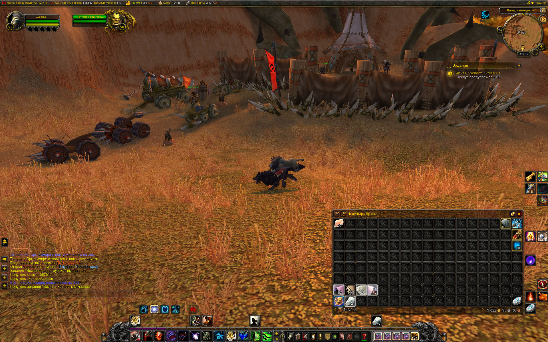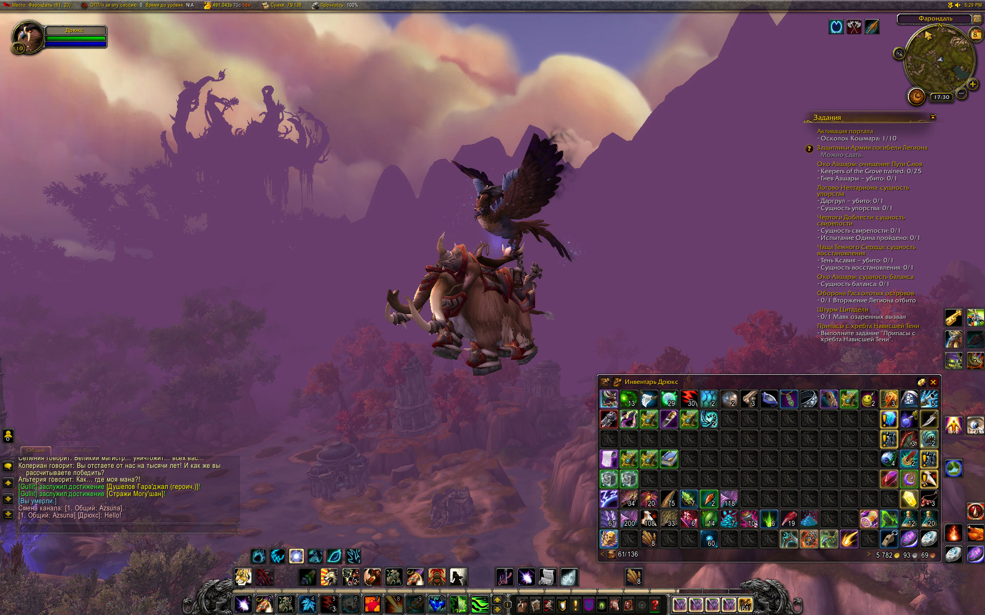 | Description | Глюки при переходе друида из одной формы в другую. В данном случае, друид вызвал мамонта с торговцами для ремонта, после чего не слезая с мамонта перешел в походный облик (сова). Дальше взлет и... в когтях мамонт, законная добыча. Торговцы осыпались палой листвой и остались на земле. Несколько ранее на этом же друиде наблюдал поездку этого самомго друида в форме кошки на спине квестового волка. Скрин тоже добавлю, но то бог с ним. Бывает. | ||||