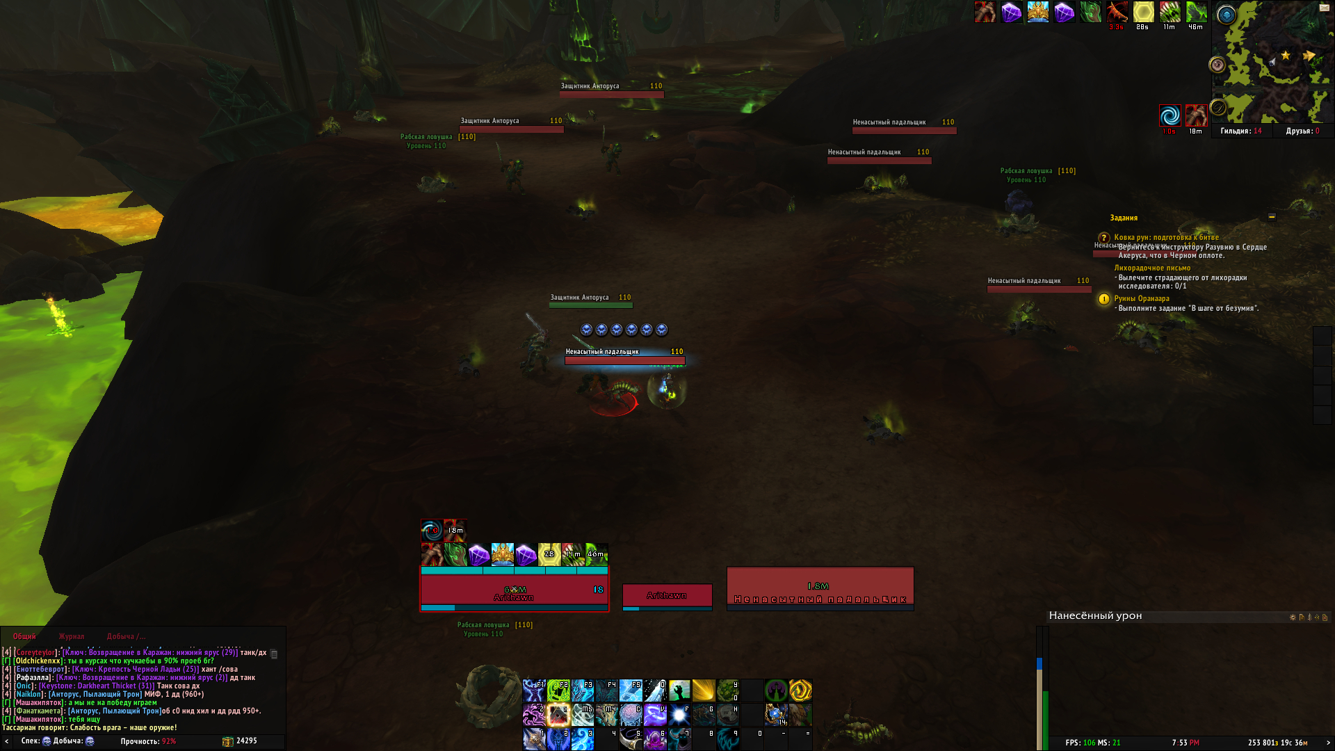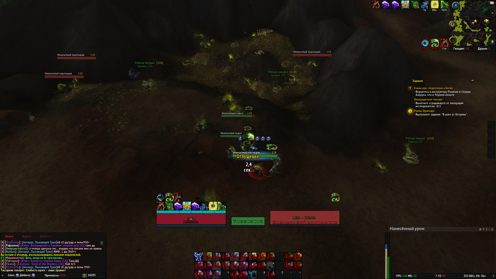 | Steps To Reproduce | От тестера: spell id: 222317 spell id: 222204 При проке Тассариана зачастую сам игрок получает стан вместе с мобами, а так-же не сильно часто сам стан бывает не прокает, хотя Тассариан появляется и начинает бить таргет | ||||