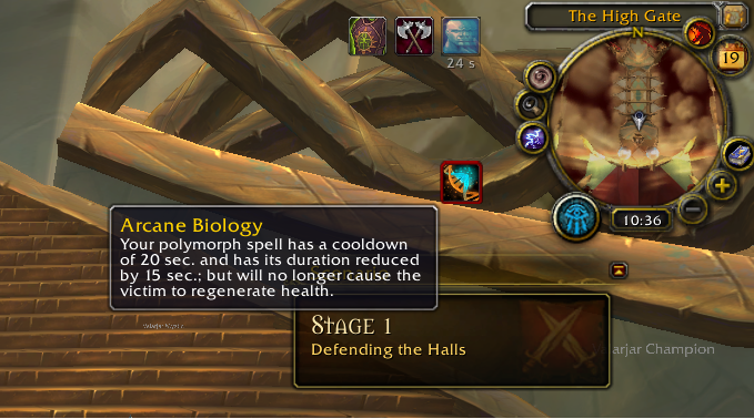 | Description | Arcane Mage artifact quest line - Quest "The God-Queen's Fury" cant be completed due to bug, which is that when in the scenario Polymorph spell should cause the target not to regenerate health. The current state is that when Polymorph is used on a target it is acting like a normal Polymorph and the target regains its health immediately. It is needed to be as the buff "Arcane Biology" is described - the target should not regenerate hp when polymorphed. | ||||