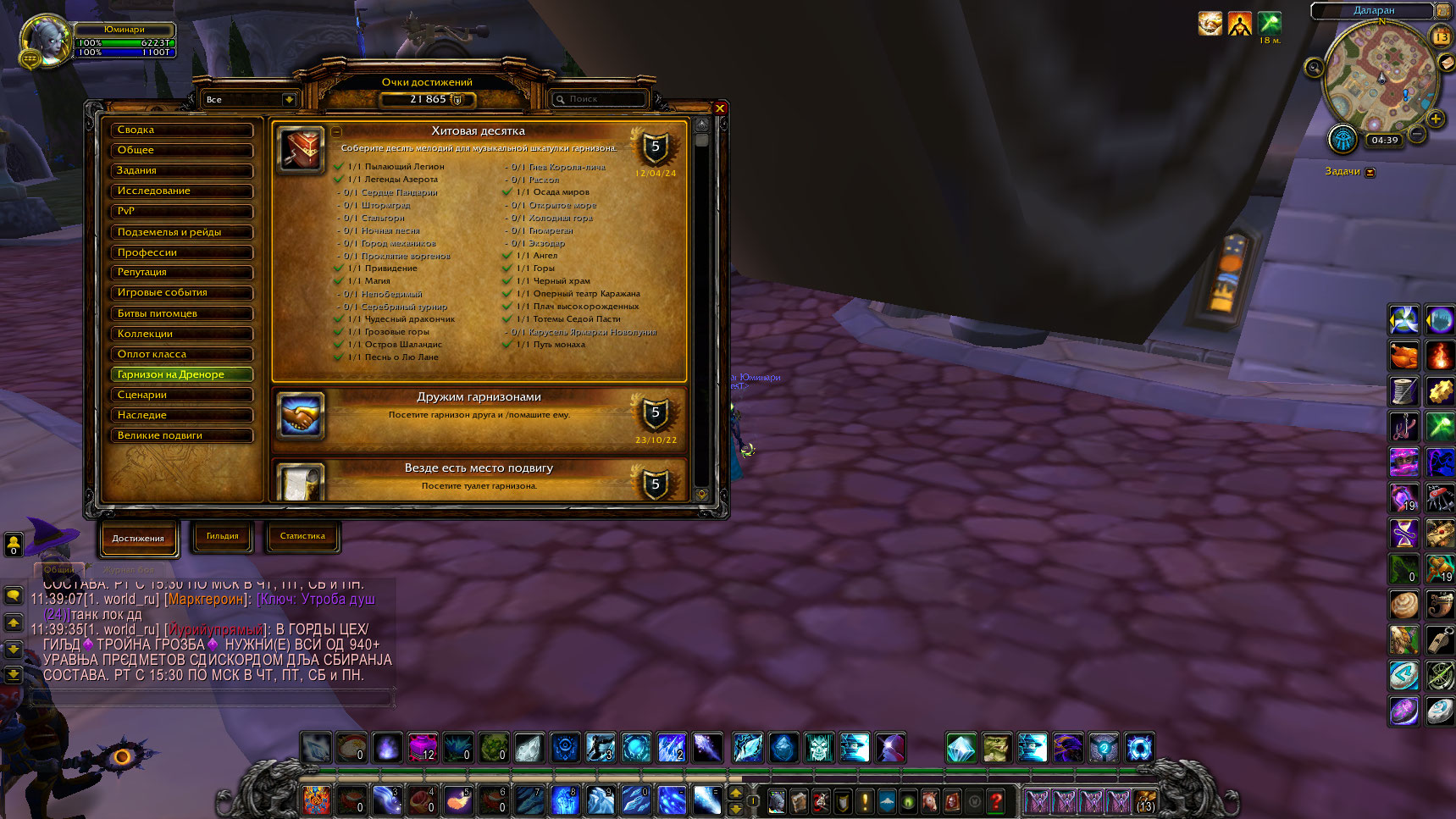 | 2024-04-15 08:20 | Alica228 | Summary | достижение Хитовая десятка (дренор, гарнизон) => С Иллидана не падает мелодия |
