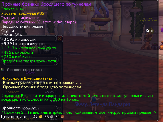 | Description | Сет из https://ru.wowhead.com/item=137397 https://ru.wowhead.com/item=137480 | ||||