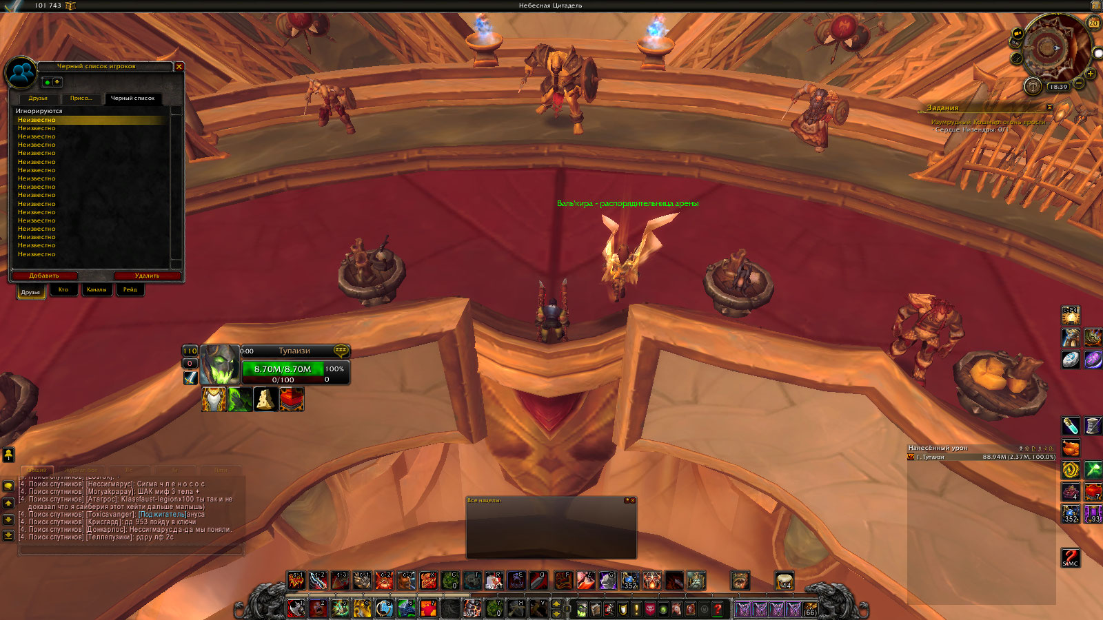 Ники моих персонажей: Eteriel, Atalantea, Likteon, Quanlee, Tarias (удален) Ники специально созданных для теста персонажей (удалены): Вупыавпыв, Йцуфывяывфы, Навыпыв, Ривфйыв Ники добавляемых я не вспомню, добавлял первые попавшиеся ники из лфг, запомнил только 1, т.к. использовал его несколько раз: Покша, еще 1 видно на скрине выше |