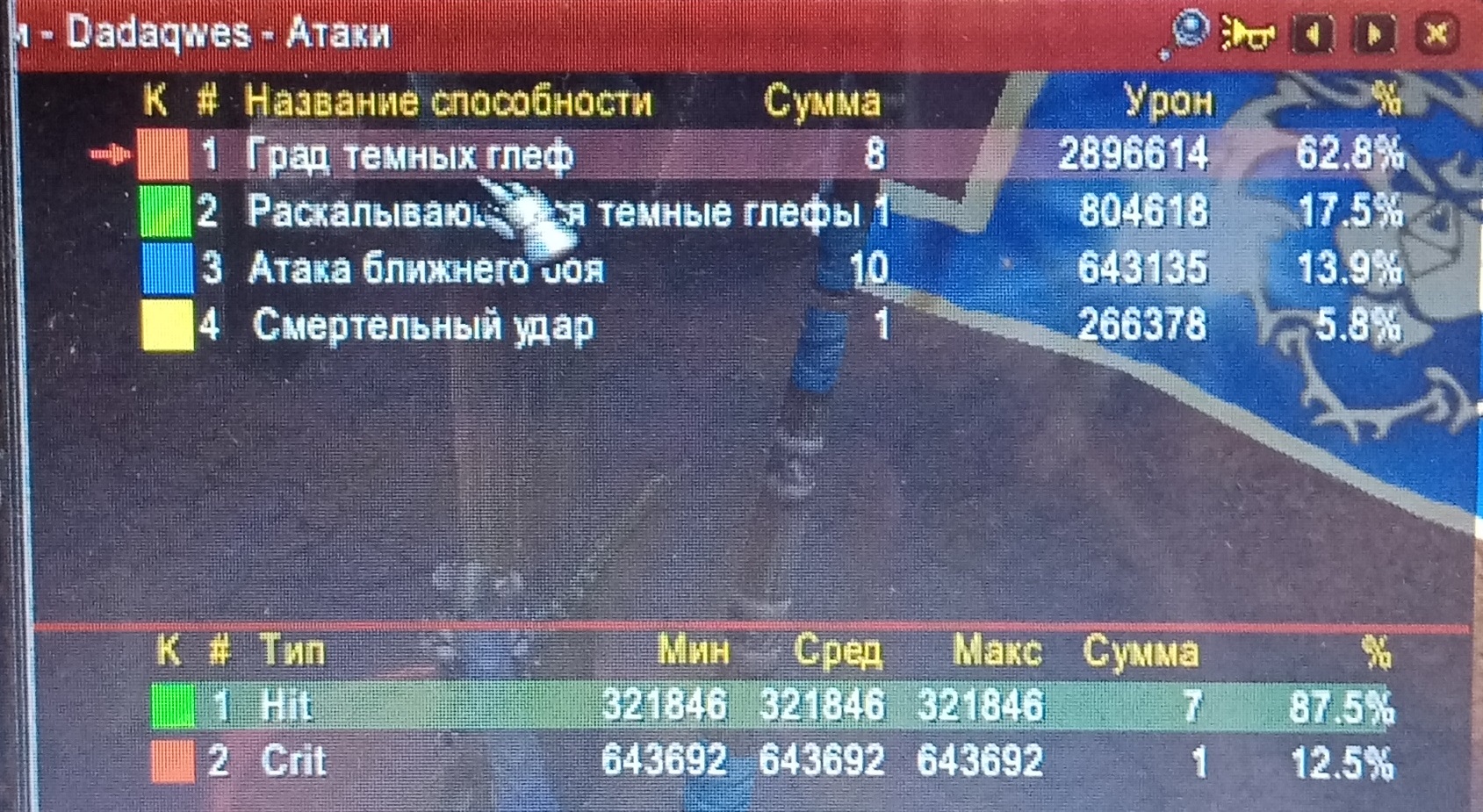 | Description | Сочетание Удара колосса + тринькета Сочащийся хлестокрыл работает некорректно Удар колосса у воина в специализации Оружие должен увеличивать весь входящий урон по цели от воина на определенный % в зависимости от количества искусности. И независимо от того откуда поступает урон, от способностей воина или тринек. Я не знаю намеренный ли это нерф или ошибка но способность Удар колосса НЕ распостроняется исключительно на тринкет Сочащийся хлестокрыл. Другие тринкеты (Например Лунные глефы затмения которые будут отображены в скринах ниже) работают корректно с данной способностью. У воина специализации Оружие этот тринькет бисовый и некоректная его работа сильно уменьшает дпс воина и делает его неспособным конкурировать по дпсу с другими классами. Надеюсь что вы как можно скорее почините данную проблему! | ||||