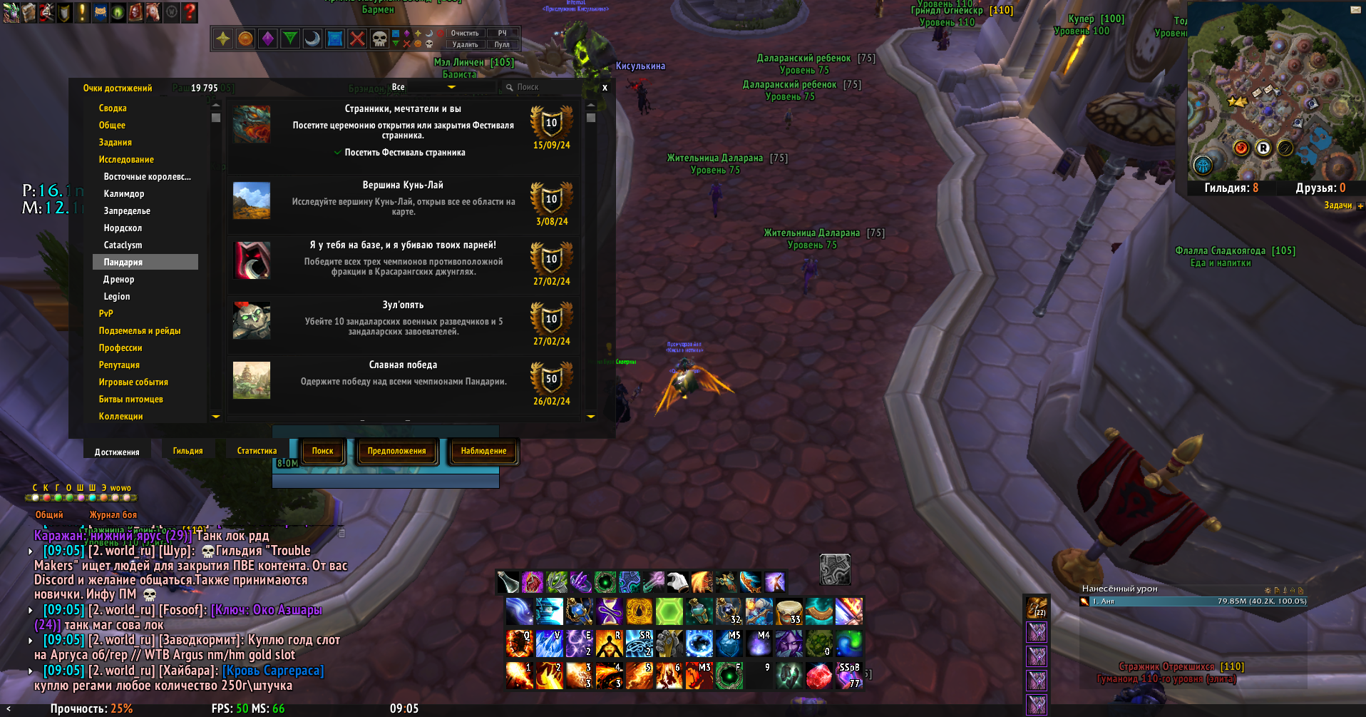 | Description | Добрый день! Работает ли https://www.wowhead.com/ru/achievement=7518/странники-мечтатели-и-вы ? Сидела где-то с 22:45 по серверному времени на месте проведения фестиваля, но ничего не происходило. Фестиваль должен проходить с 21:00 до 23:00 по сервер. времени в воскресенье. И еще во время ивента должны появляться петы https://www.wowhead.com/ru/npc=67022/детеныш-фестиваля-странника , но их тоже нет :( Иногда бегая по берегу, получала урон от огня. Судя по скриншотам с вх, на тех местах стояли костры. Попробую на следующей неделе попасть к началу, мб засчитает. | ||||