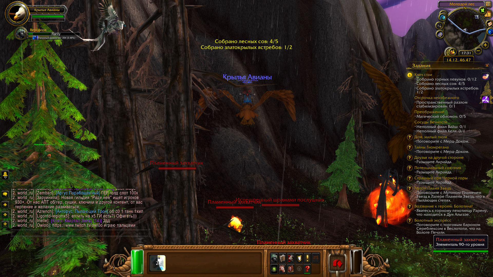 | Steps To Reproduce | 1. Принять задание 2. Использовать предмет 3. Нажать "Клич стаи" возле Лесной совы или Златокрылого ястреба | ||||