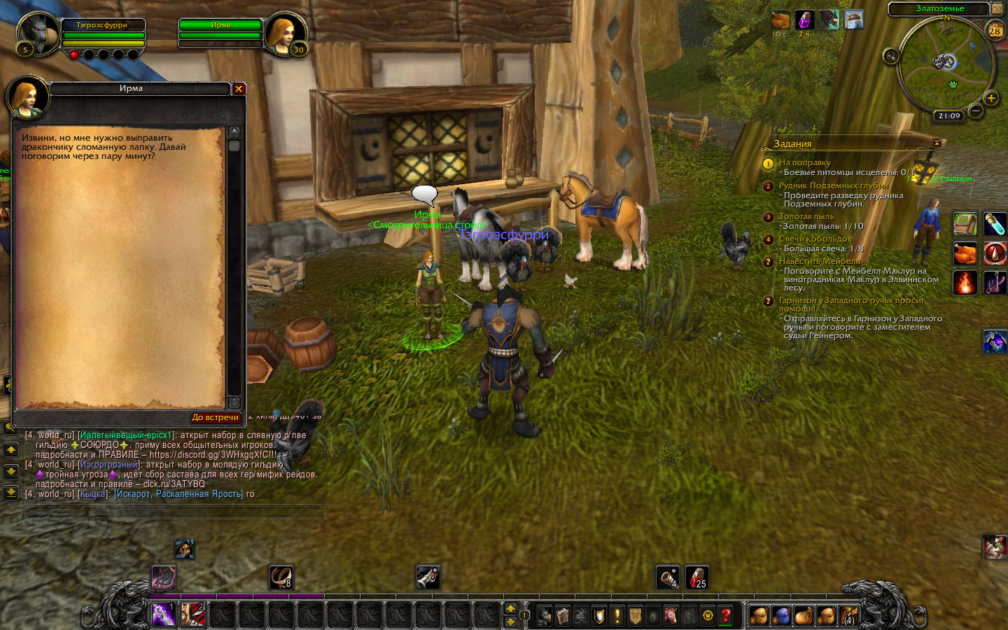 | Description | Здравствуйте Уважаемая Администрация Uwow, столкнулся с такой проблемой во время взятия задания https://www.wowhead.com/ru/quest=31309/на-поправку хотел исцелить через NPC как и требует задание у Ирмы не хочет не в какую, а бежать очень далеко до штормграда так как я играю на х0.5 опыте довольно затруднительно баг не серьёзный но напрягает и не срочный если не сложно не могли бы исправить? https://www.wowhead.com/ru/npc=6749/ирма https://www.wowhead.com/ru/quest=31309/ | ||||